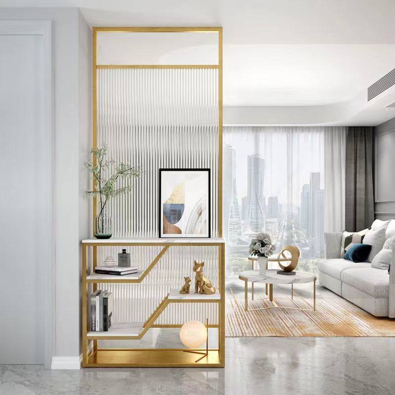 轻奢不锈钢屏风现代简约美容院民宿客厅入户玄关卧室遮挡玻璃隔断