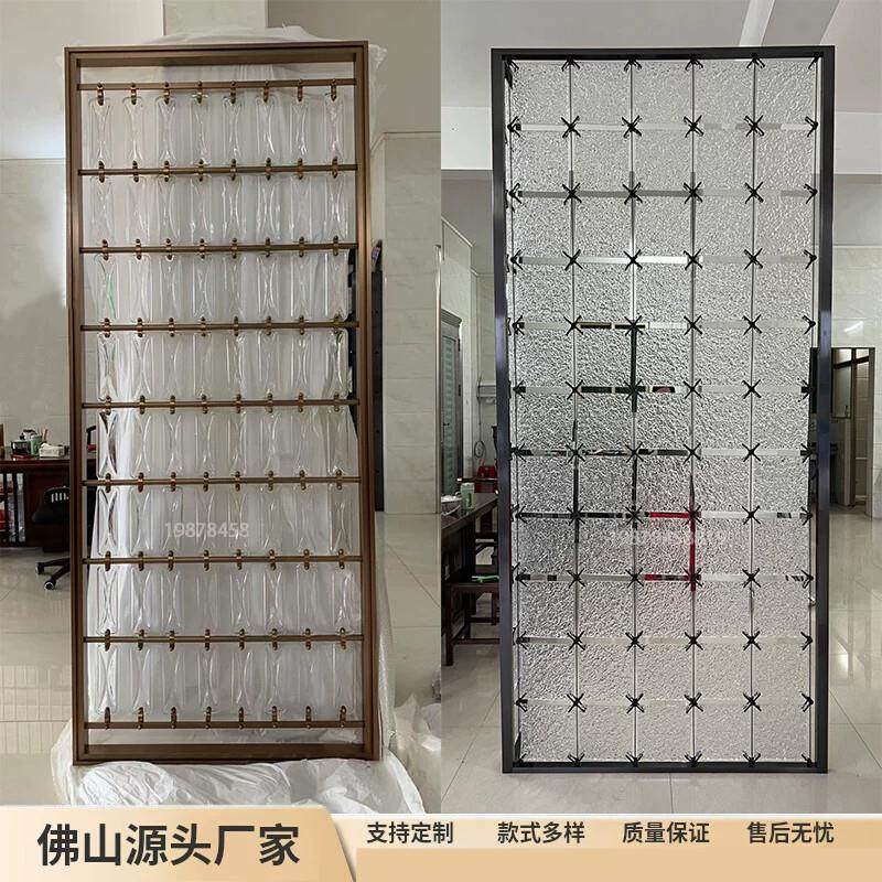 现代简约长虹玻璃不锈钢屏风隔断中式铁艺客厅入户玄关遮挡墙定制
