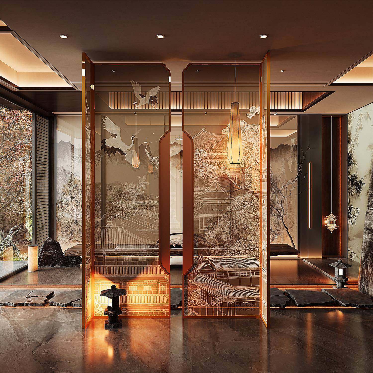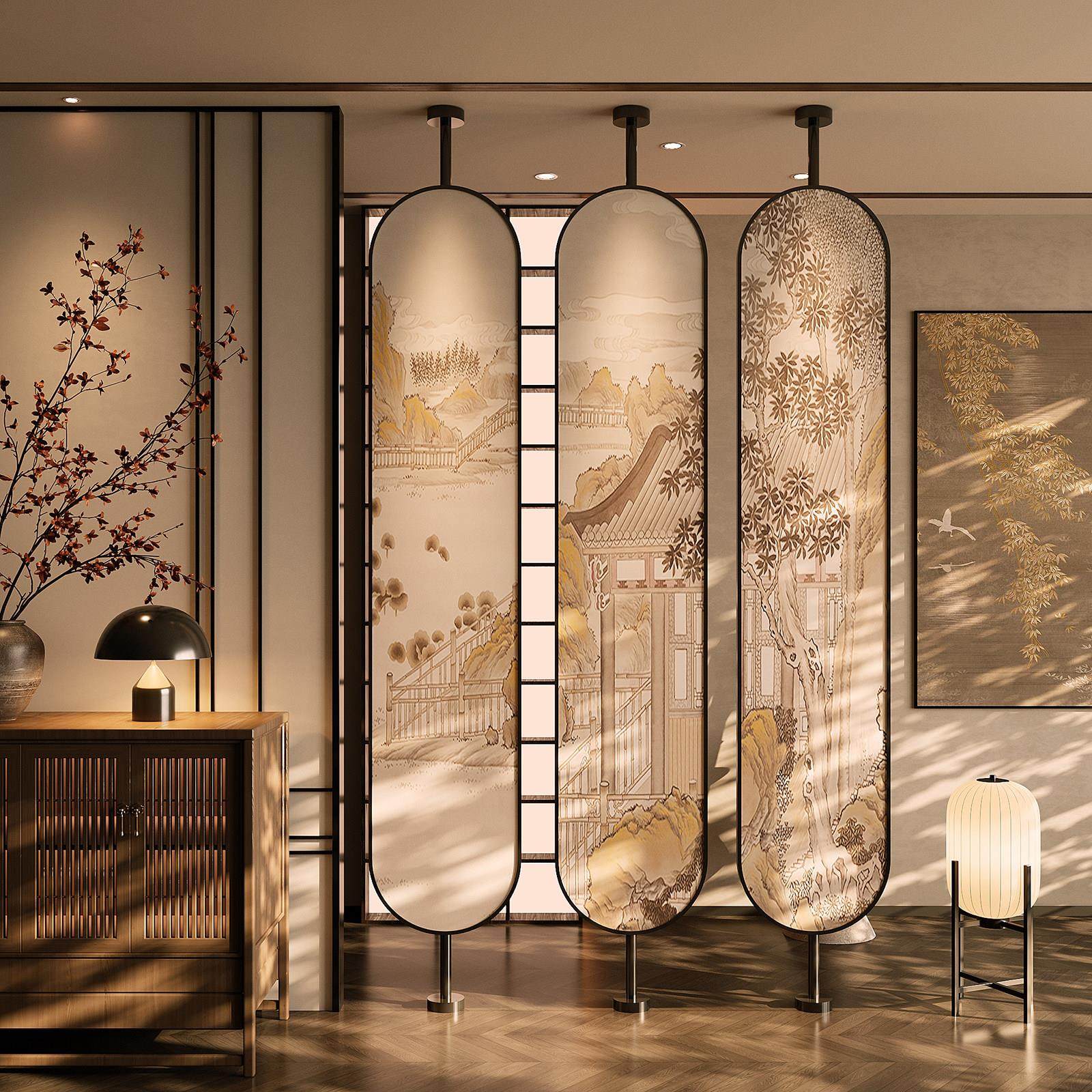 宋式美学不锈钢屏风隔断客厅入口隔断装修禅宗茶室办公室屏风定制