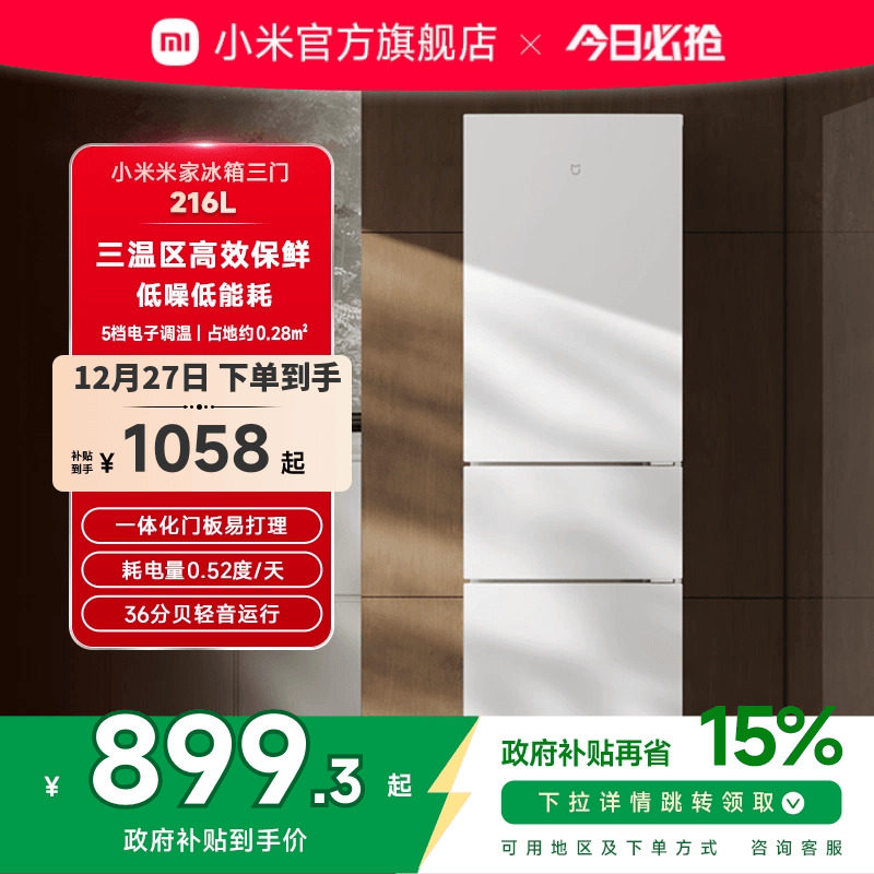 小米米家206L小冰箱三门二级能效冷冻冷藏家用小型官方旗舰店正品