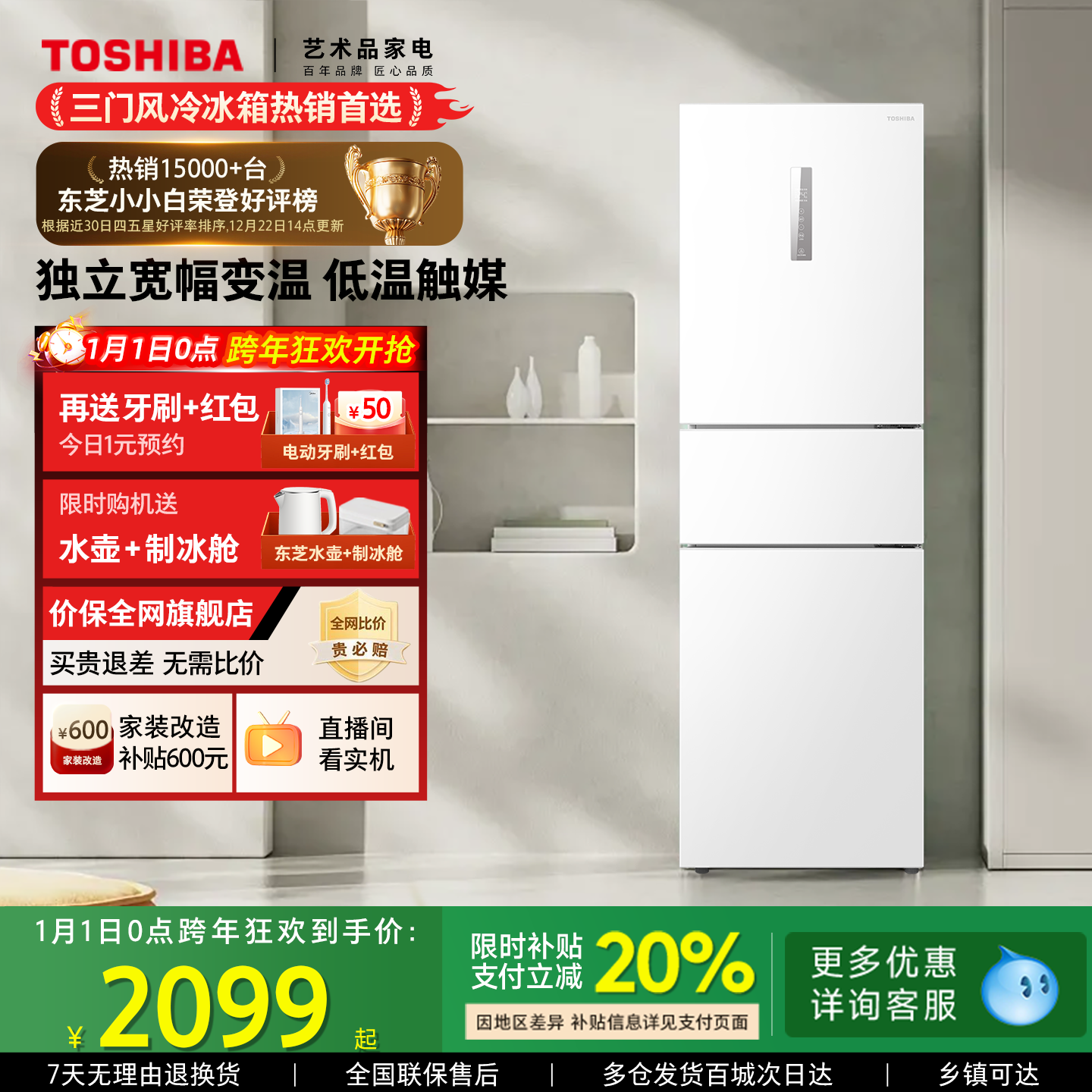 东芝小小白285三门一级能效风冷无霜变频变温家用小冰箱以旧换新