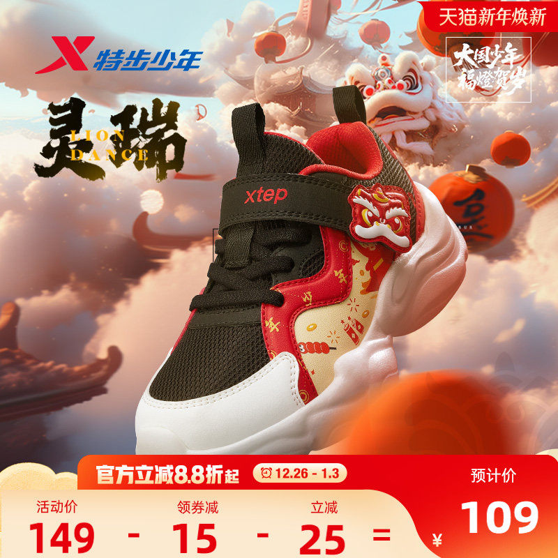 福燈贺岁|特步童鞋儿童休闲鞋女童新年款正品防滑耐磨小童运动鞋