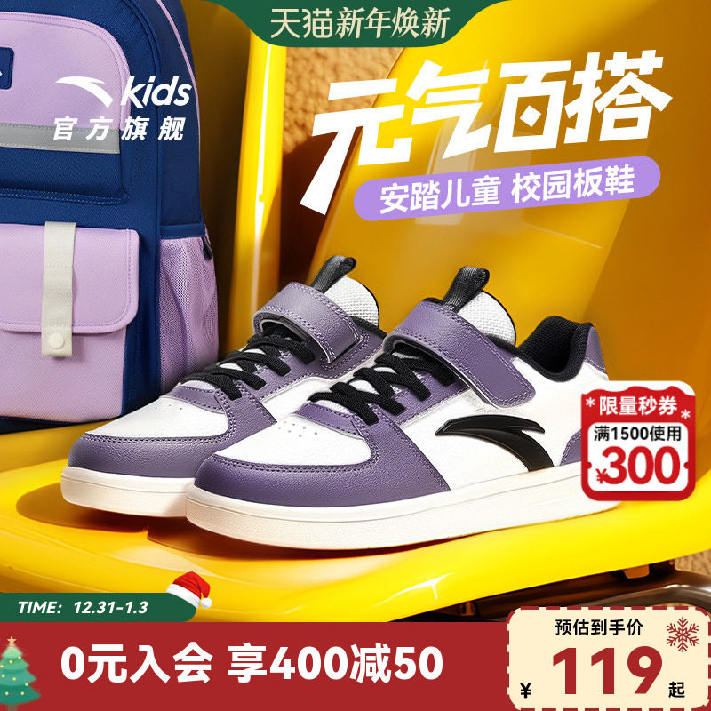 安踏童鞋儿童休闲鞋2026春季新款女童低帮板鞋大童学生春秋运动鞋