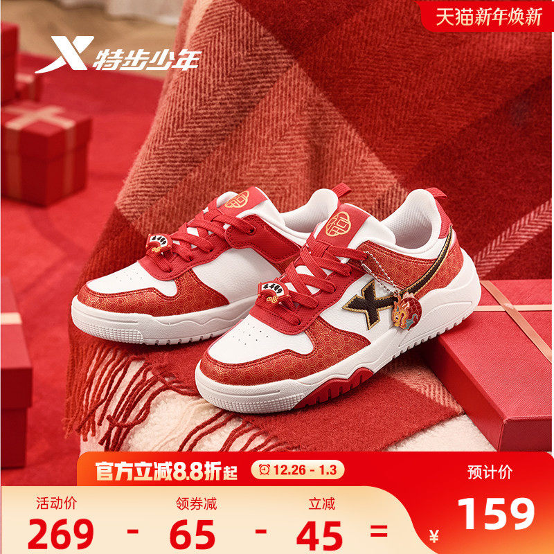 福燈贺岁|特步童鞋儿童休闲鞋男童新年款防滑保暖中大童学生板鞋