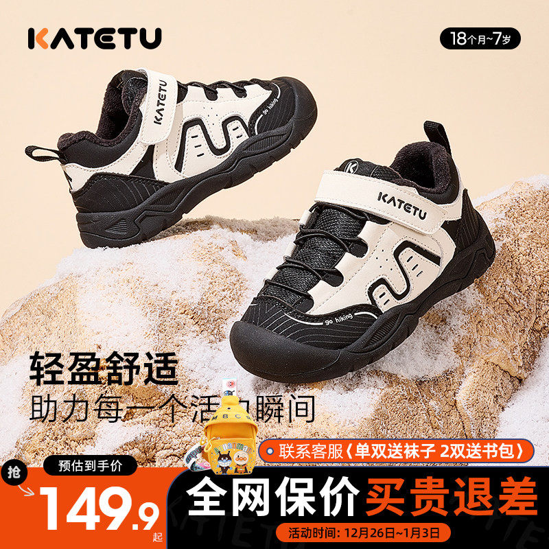卡特兔童鞋2025新款冬季男童加绒户外鞋女童保暖运动鞋儿童休闲鞋