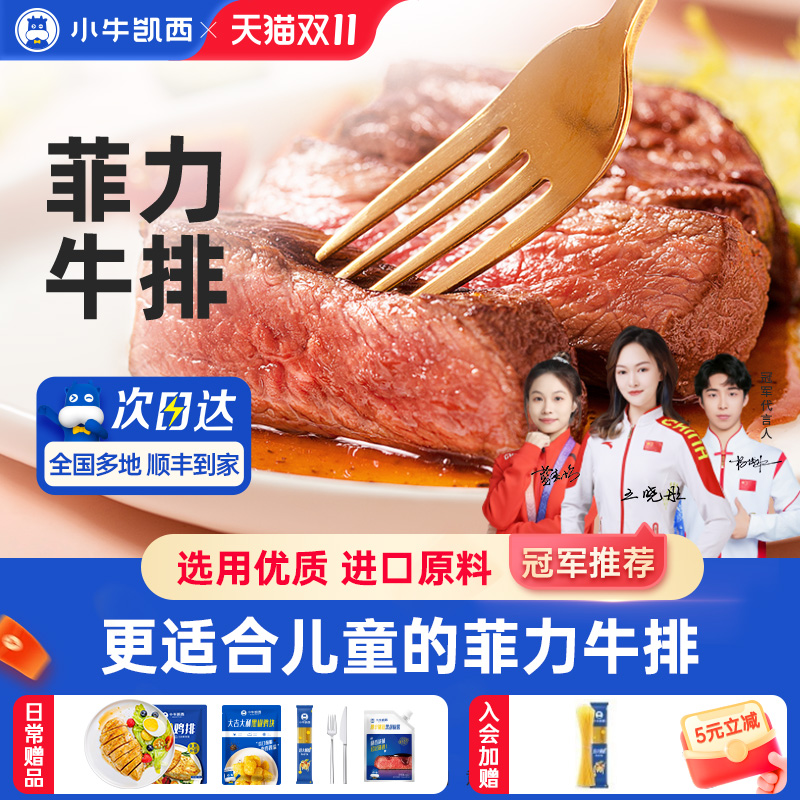【小牛凯西】整切儿童菲力牛排进口雪花牛肉家庭黑椒厚切牛扒套餐