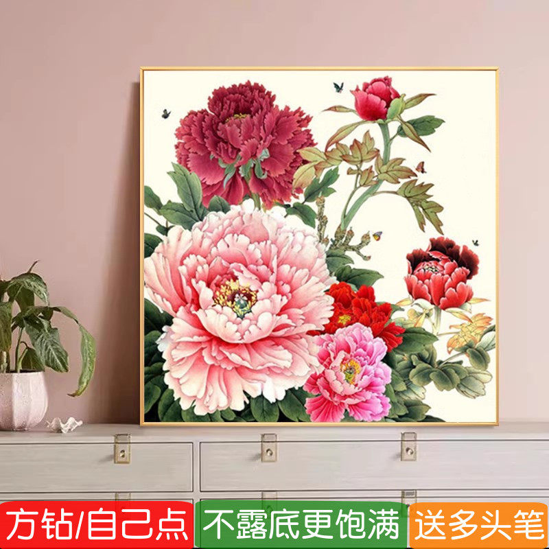 5d花开富贵2026新款钻石画方钻满钻牡丹花客厅粘贴钻十字绣砖石秀