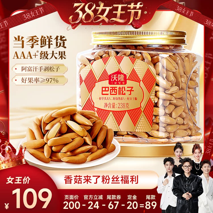 【香菇年货节】沃隆巴西松子阿富汗新货新果238g手剥松子零食