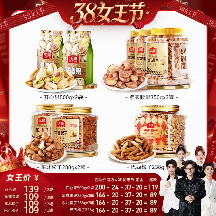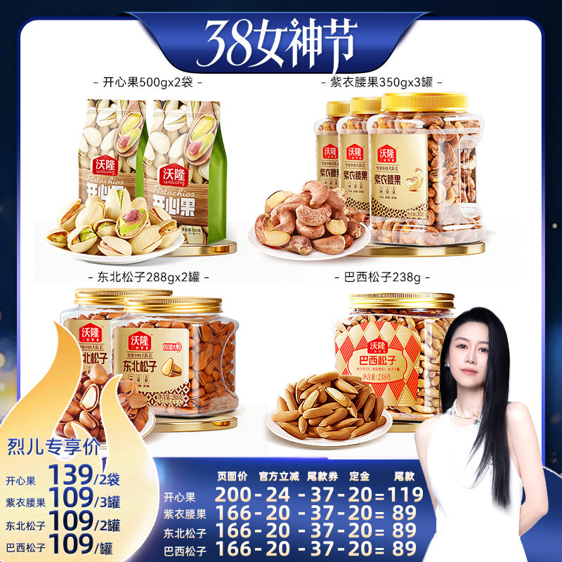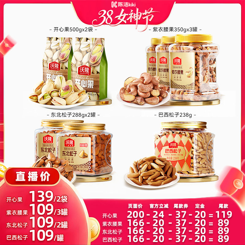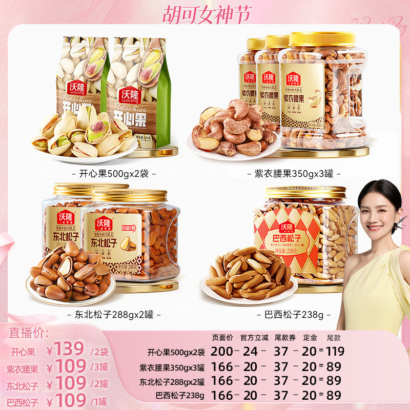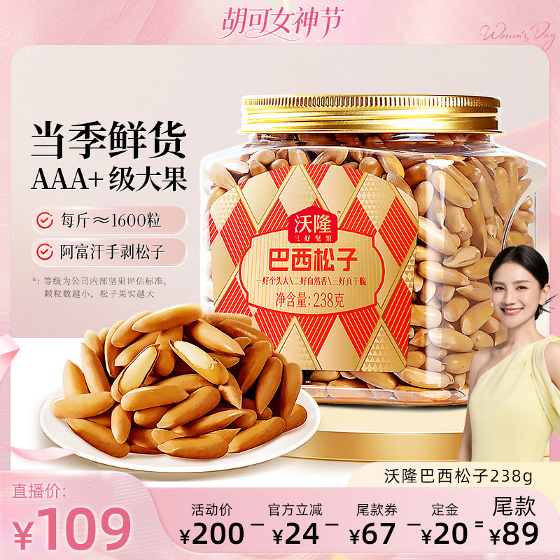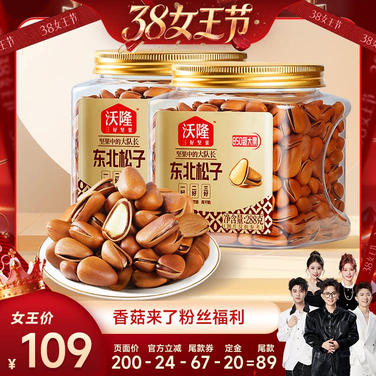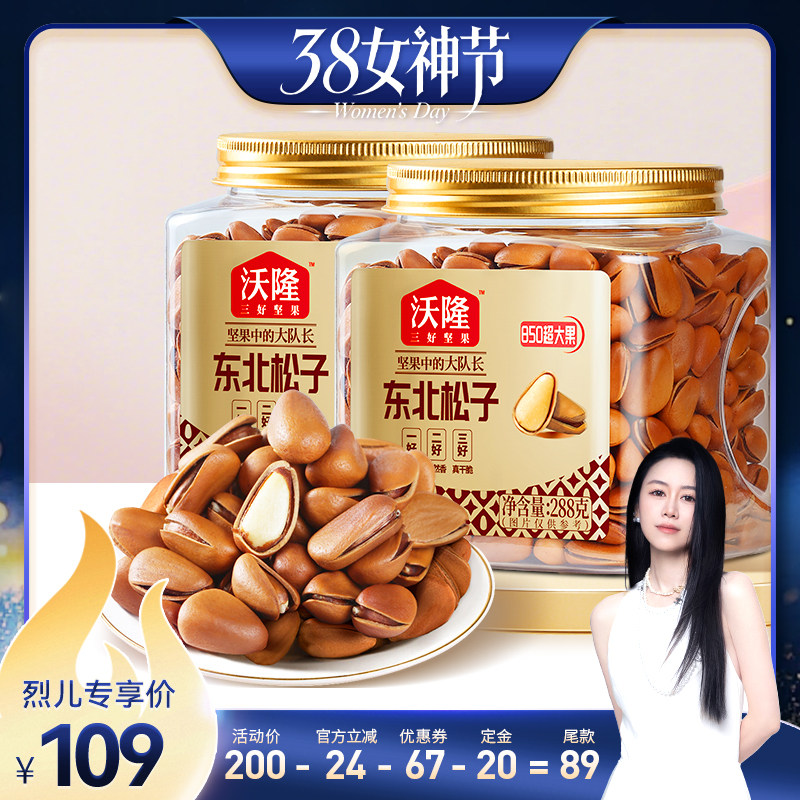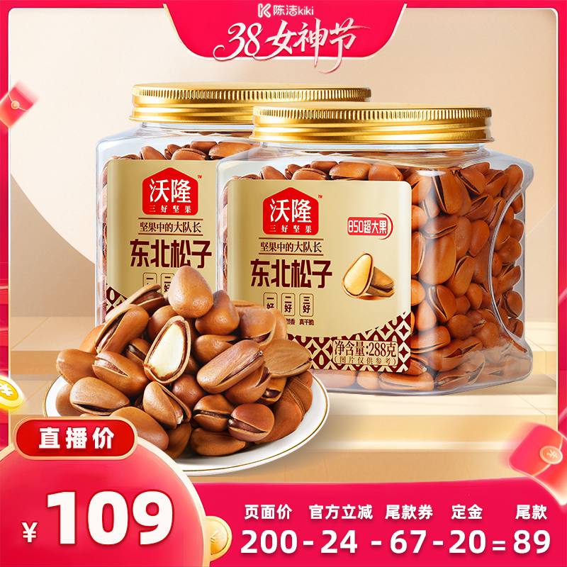 【林依轮直播间】沃隆东北特级特大松子850级288g2罐开口大果零食