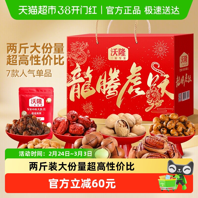 沃隆坚果礼盒沃福隆礼心意礼纯坚果零食大礼包干果炒货送人年货礼