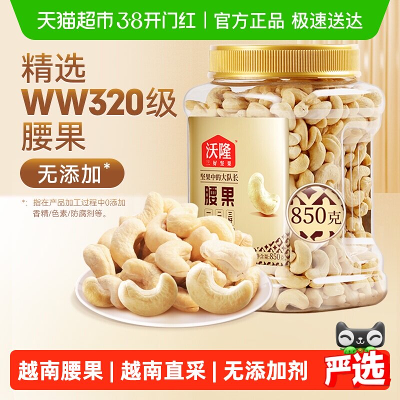 沃隆原味腰果量贩罐装不带皮大腰果干果炒货健康零食烘焙白腰果仁