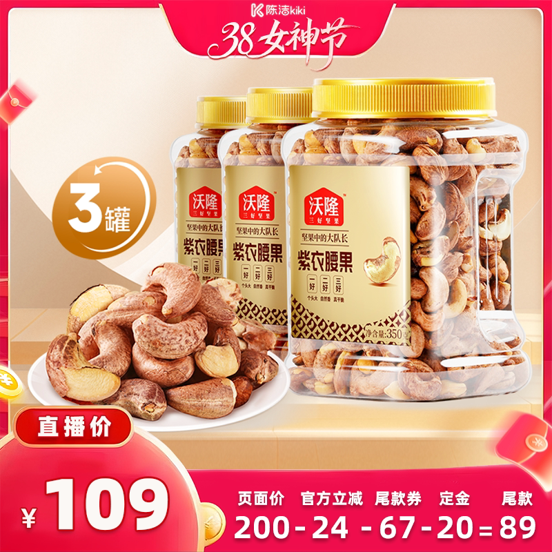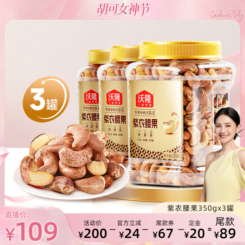 【林依轮直播间】沃隆紫衣腰果350g3罐越南大颗A180大果营养零食