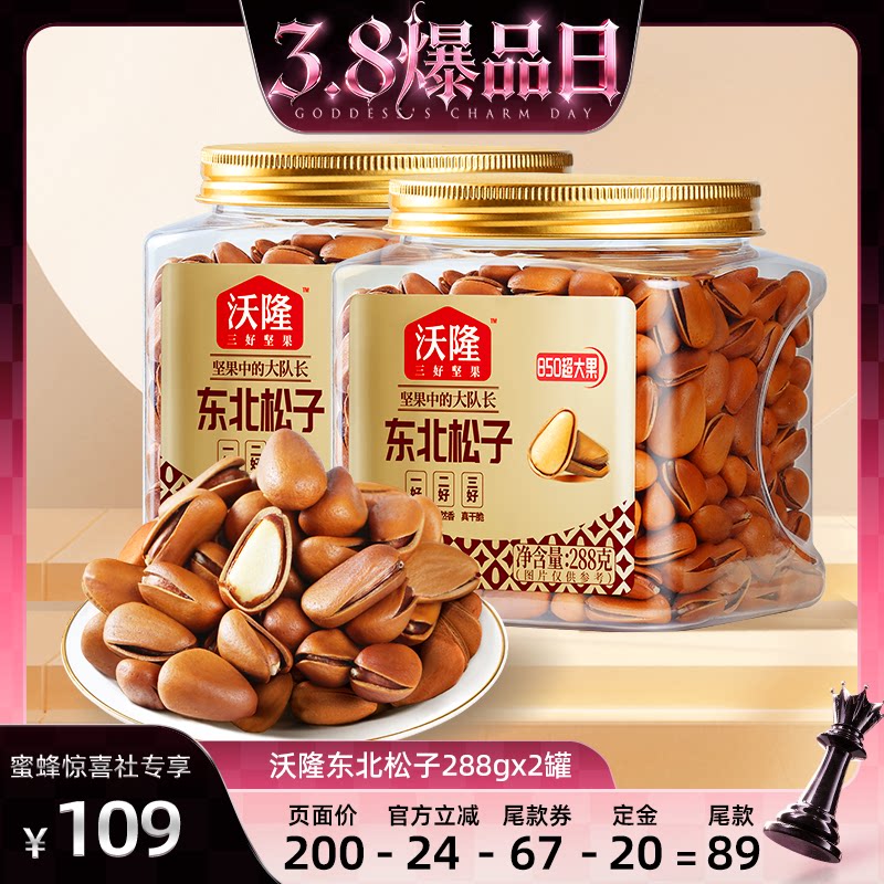 【烈儿超值年货节】沃隆东北特大开口松子288g2罐850级大果新货