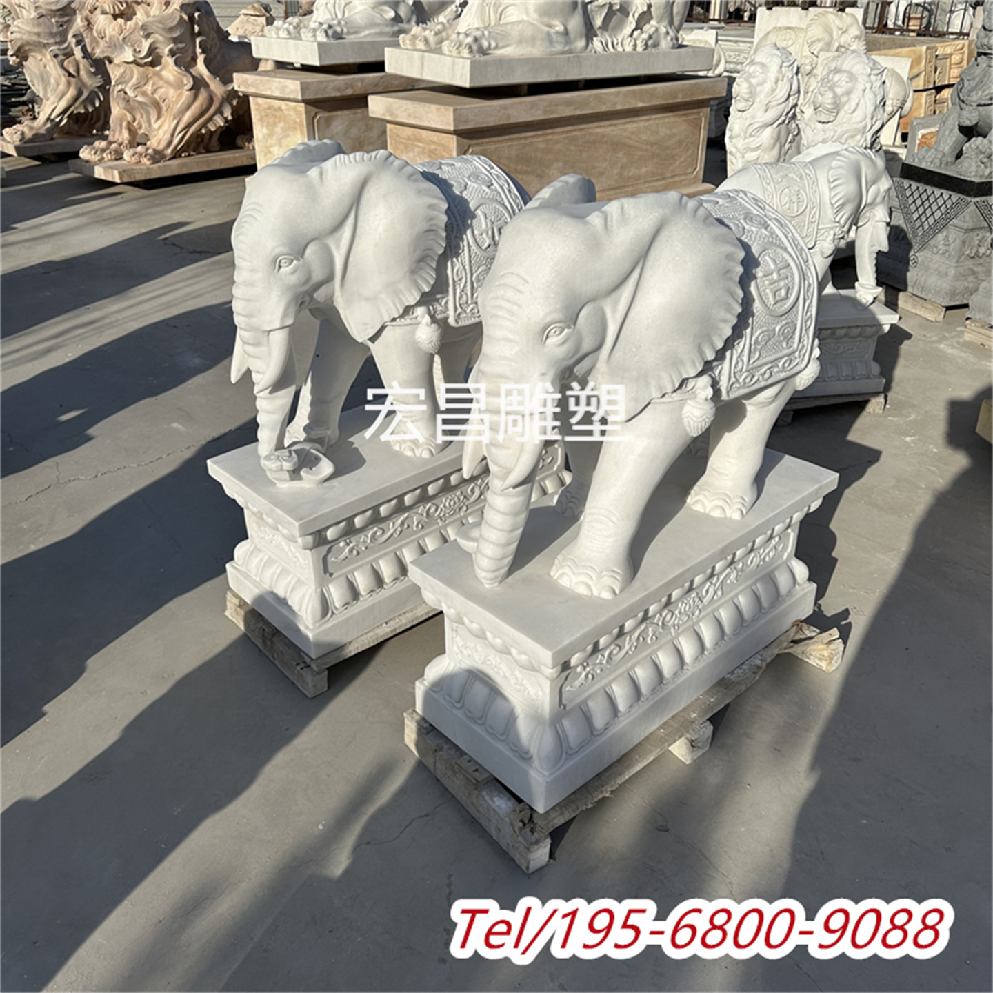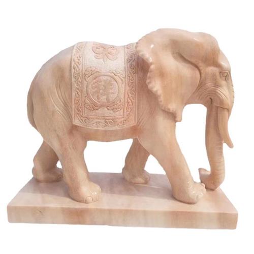 石雕小象汉白玉一对大理石象晚霞红青石大象庭院别墅酒店饭店门口