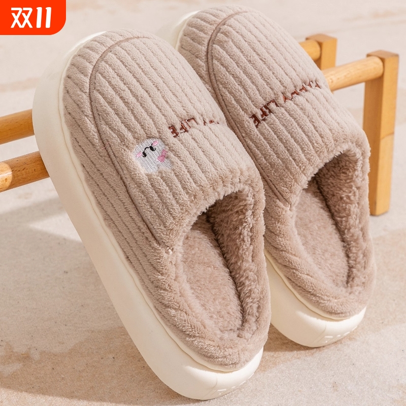 细细条 可爱小浣熊棉拖鞋情侣室内防滑保暖毛毛拖冬季居家鞋男女