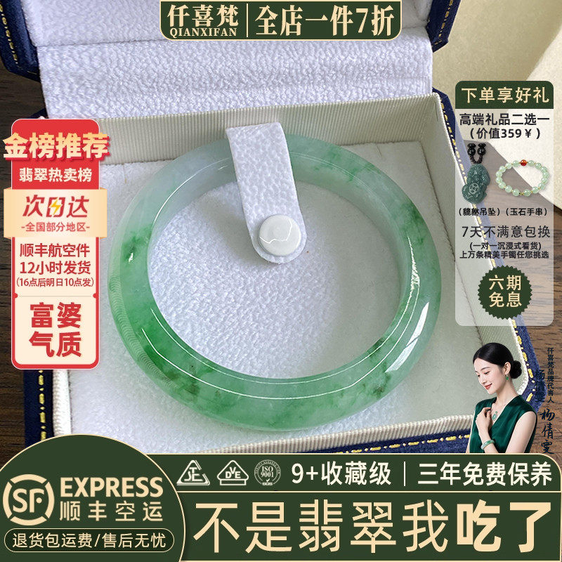 缅甸翠夫人 天然正品a货翡翠冰种飘花贵妃玉手镯子女款直播专拍