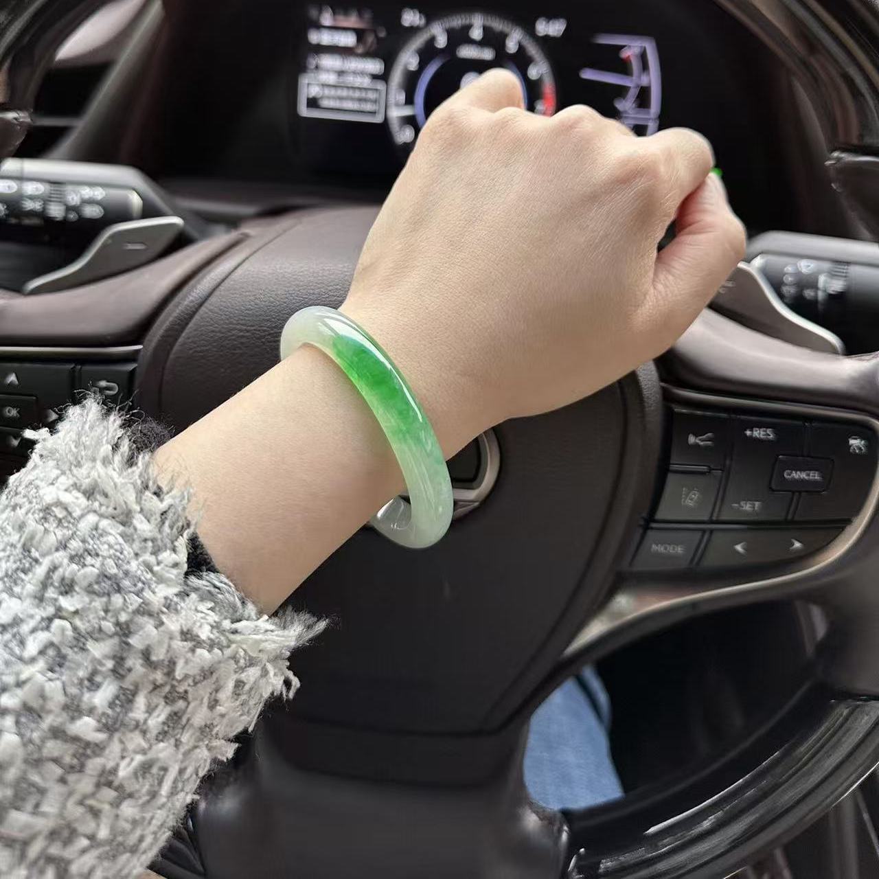 最相物"飘然系列"缅甸翡翠手镯纯色冰透种飘花正圈晴底玉手镯处理
