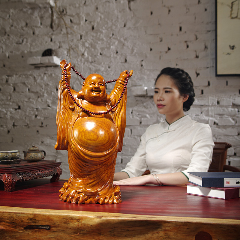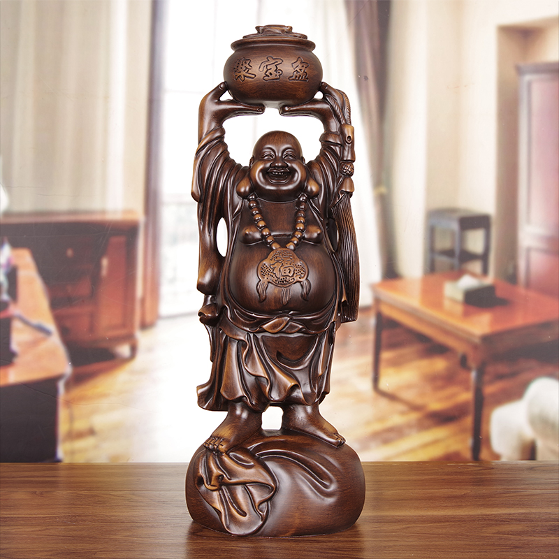 木雕弥勒佛摆件家居玄关装饰客厅乔迁新居大号笑佛大肚佛开业礼品