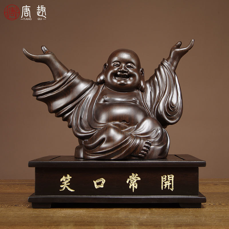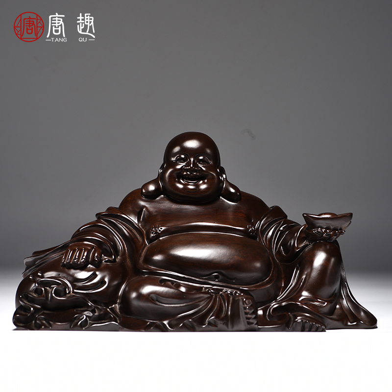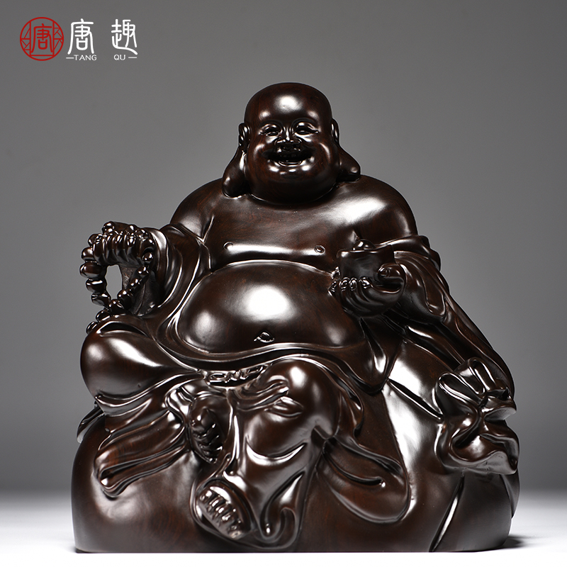 唐趣黑檀木雕弥勒佛坐笑佛摆件实木雕刻家居饰品送礼品红木工艺品