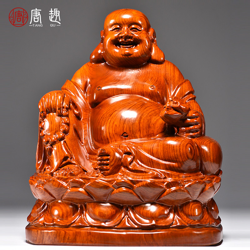 花梨木雕弥勒佛像摆件如意坐莲笑佛实木质雕刻家居客厅红木工艺品