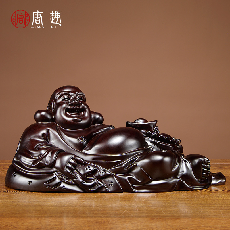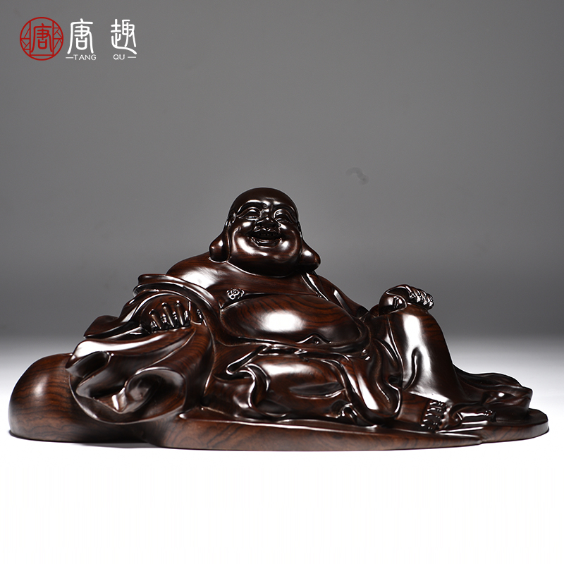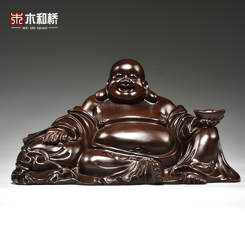 黑檀木雕弥勒佛像摆件卧式大肚坐笑佛红木工艺品实木家居客厅送礼