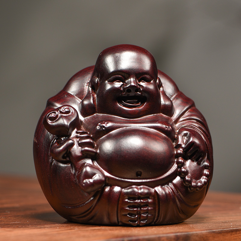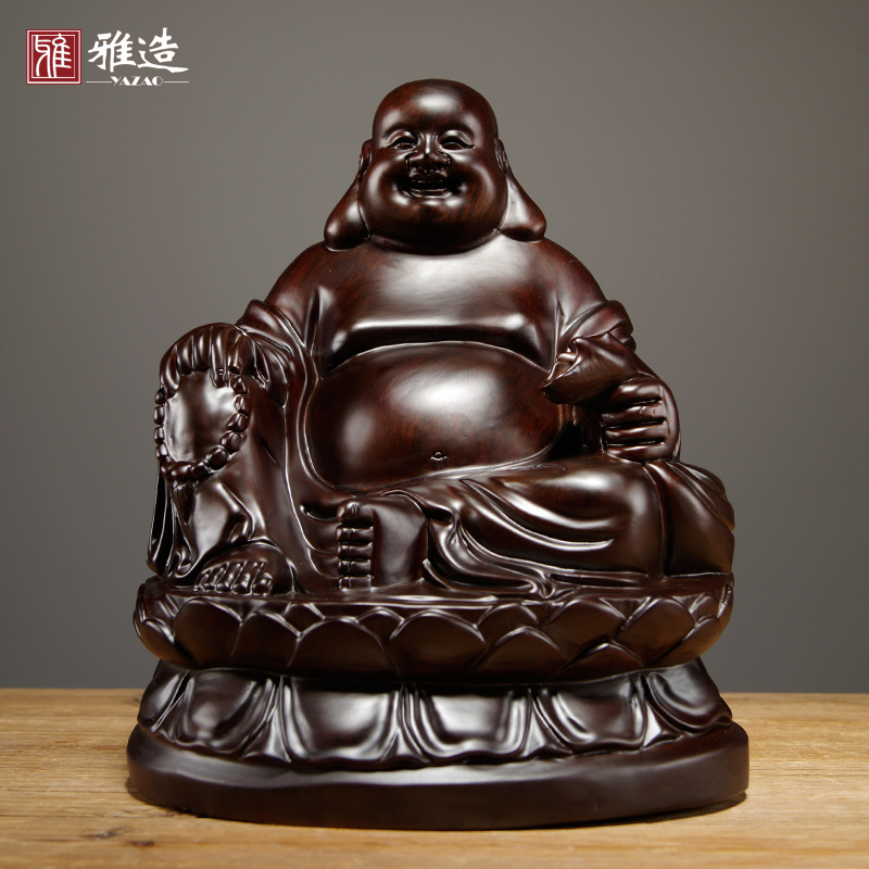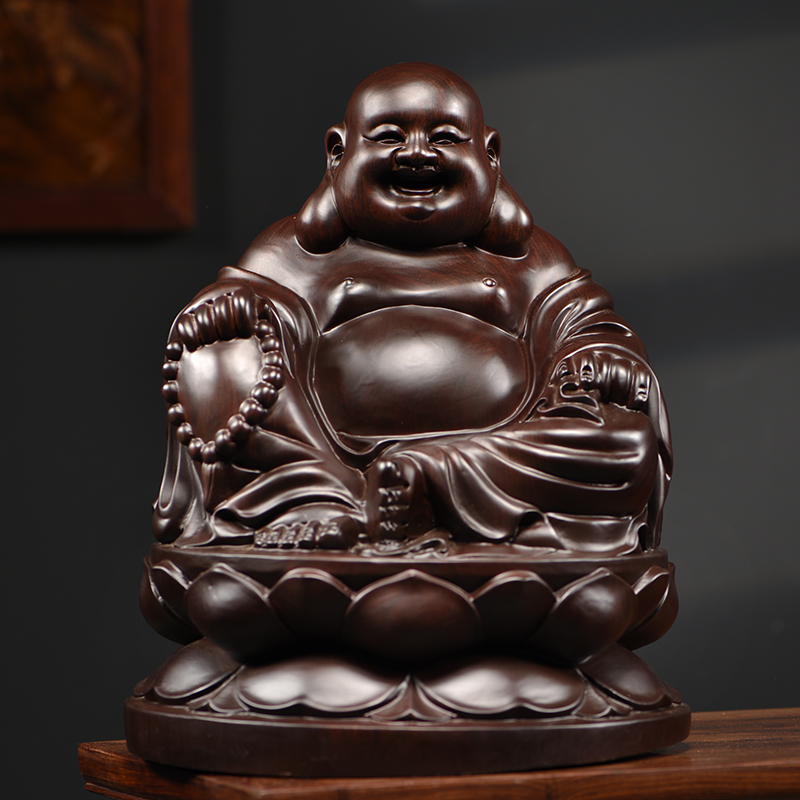 黑檀木雕弥勒佛摆件实木大肚笑佛像家居客厅桌面装饰送礼品工艺品