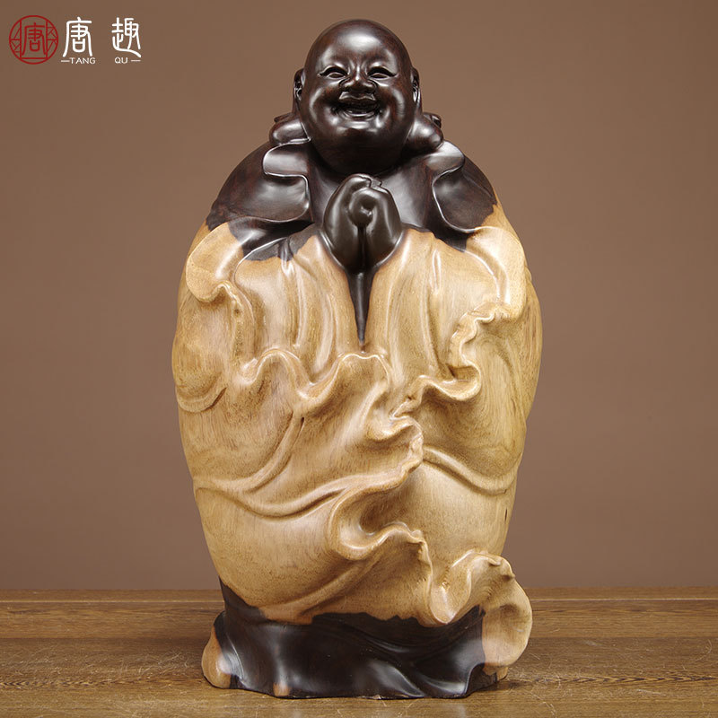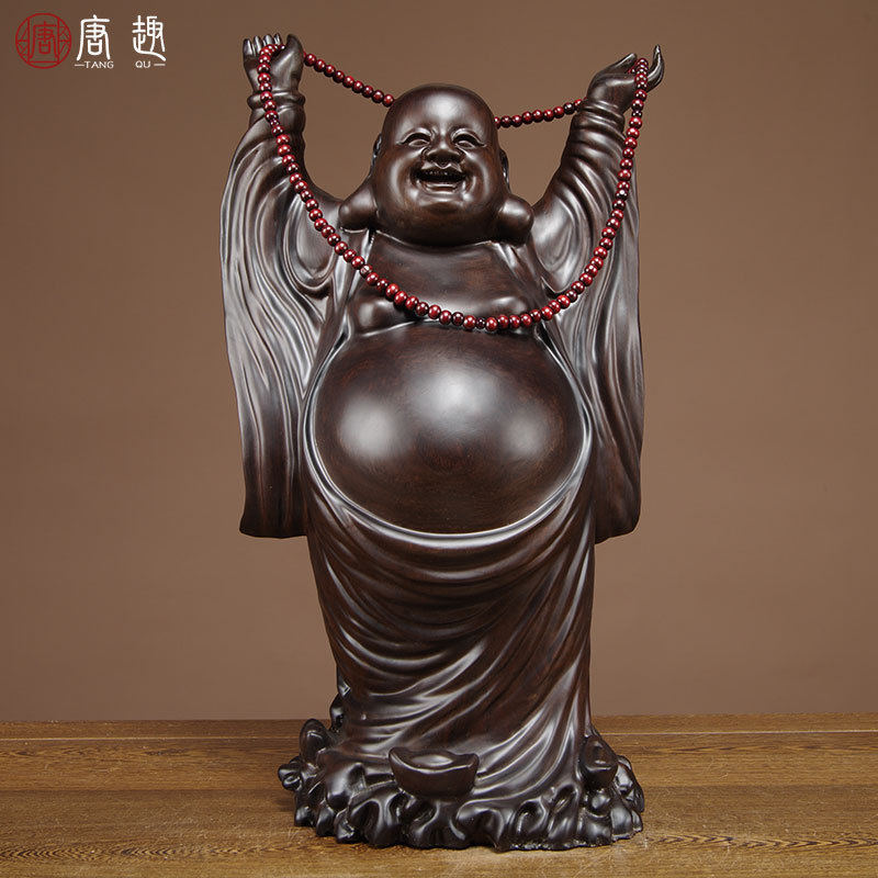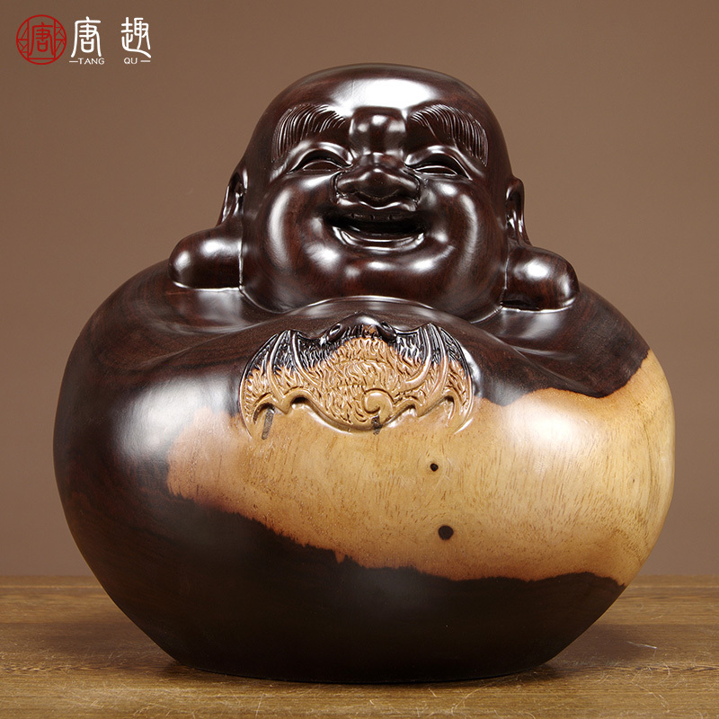 黑檀实木雕刻弥勒佛根雕摆件大号笑佛工艺品红木家居玄关装饰送礼