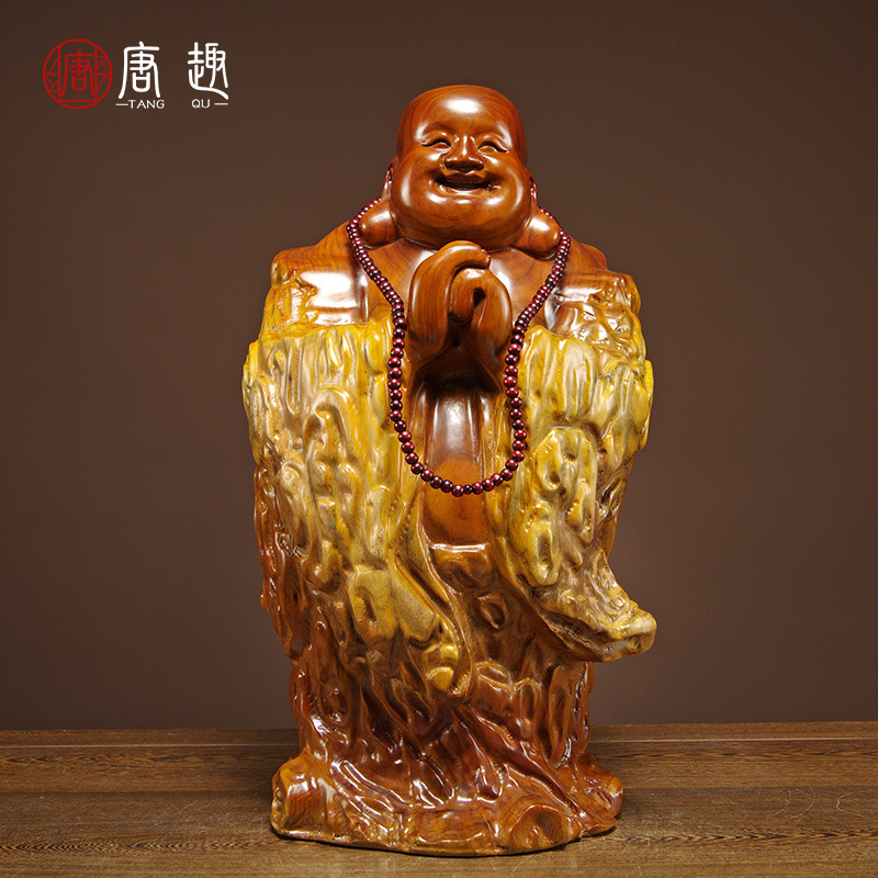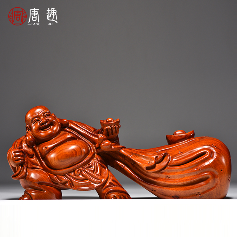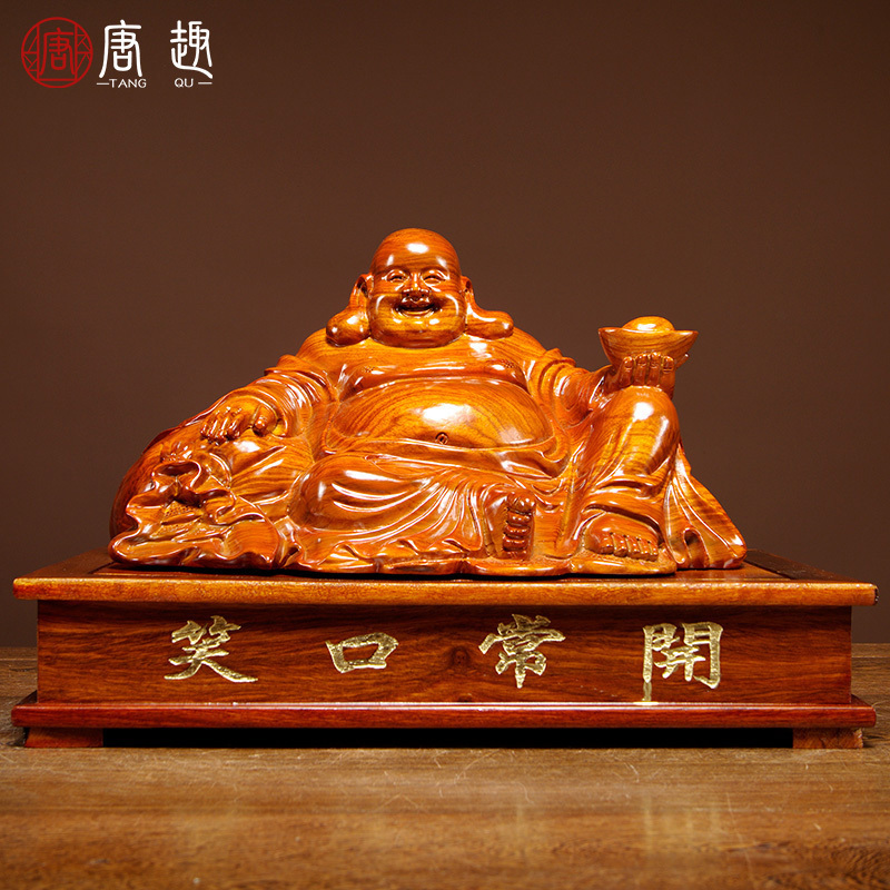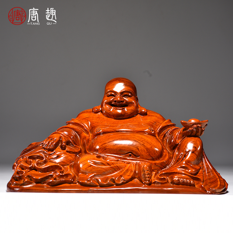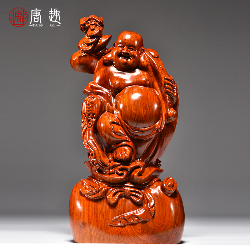 唐趣木雕弥勒佛像摆件布袋坐笑佛实木雕刻家居客厅饰品红木工艺品
