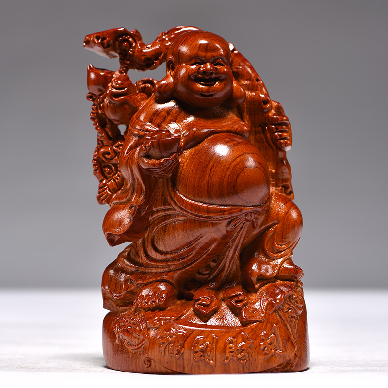 花梨木雕弥勒佛像实木摆件笑口常开大肚佛车载家居客厅装饰工艺品