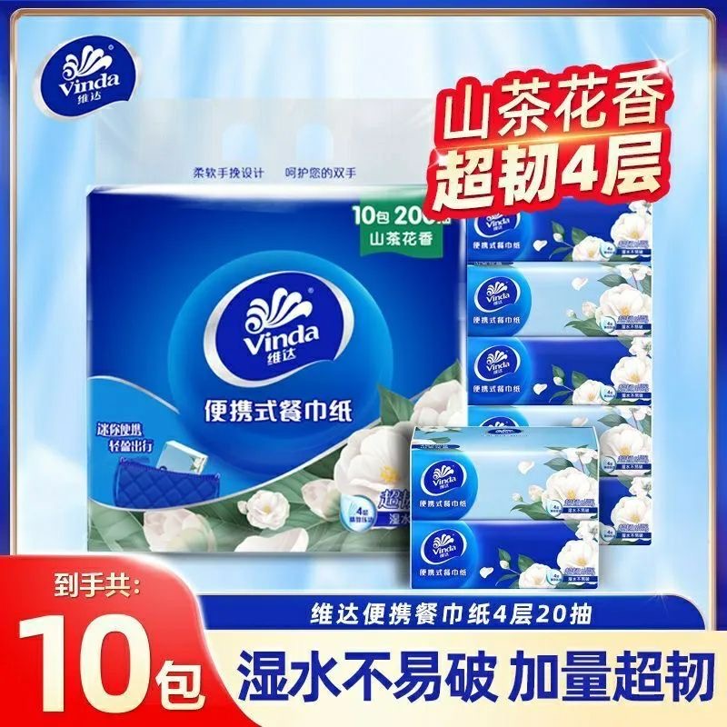 维达可湿水便携方巾10包提装纸巾面巾纸抽纸便携抽取式餐巾纸L