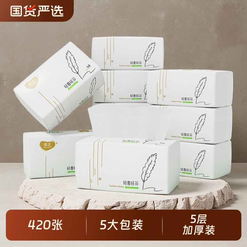 绿诗抽纸420张加厚一次性抽取式餐巾纸家用实惠装卫生擦手纸发