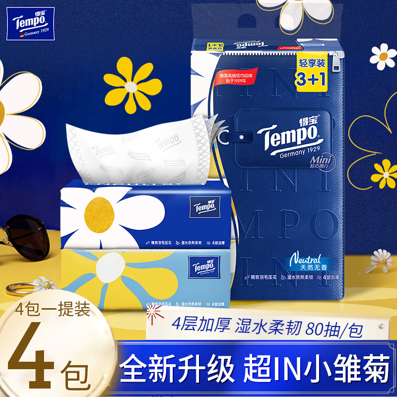 Tempo得宝抽纸Mini小雏菊4层加厚80抽家用纸巾抽取式餐巾纸正品