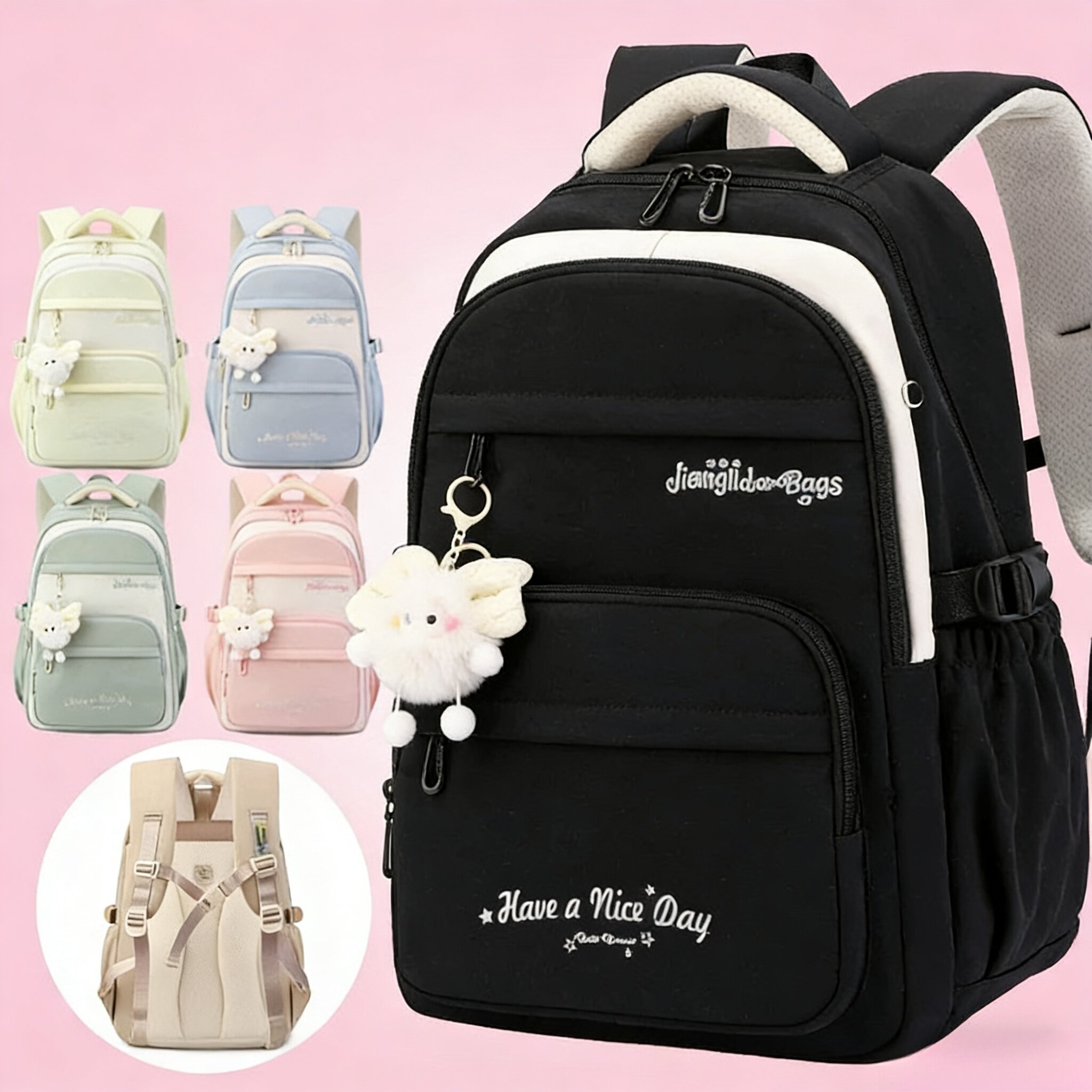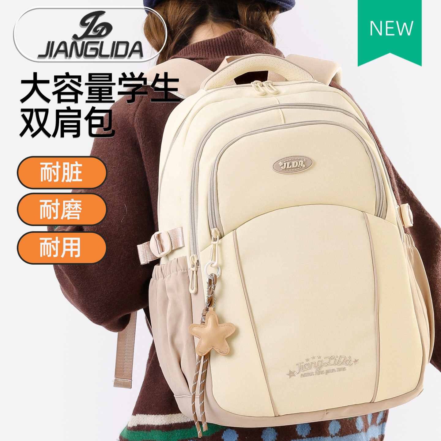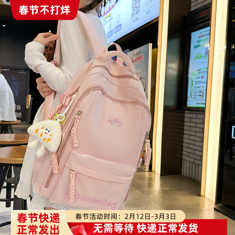 书包初中女生高中大容量简约小学生4-6年级新款轻便护脊双肩背包