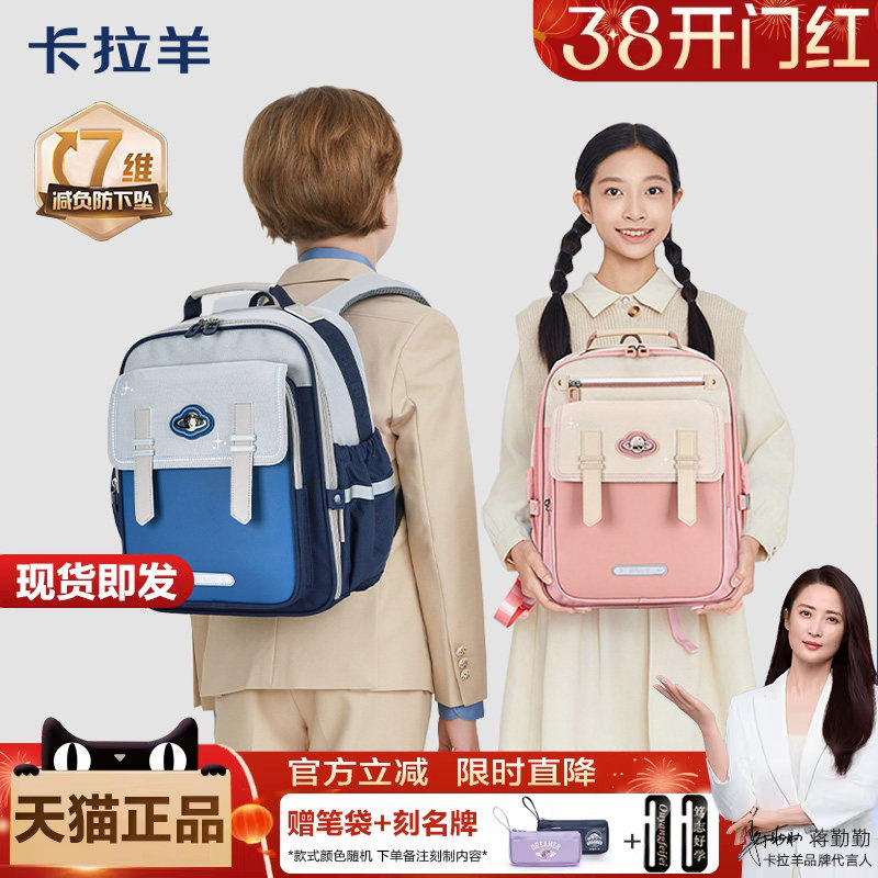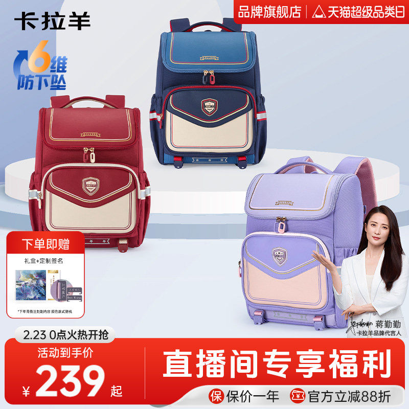 卡拉羊防下坠书包女生小学生1一4一6年级轻便减负高颜值双肩包男