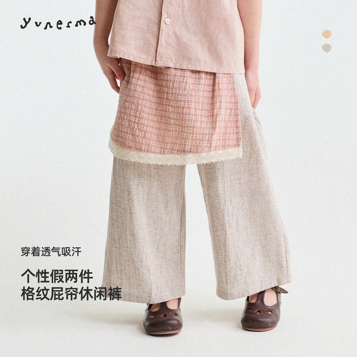 允儿妈女童夏季新款韩系百搭格子假两件防蚊裤宝宝洋气裙裤休闲裤