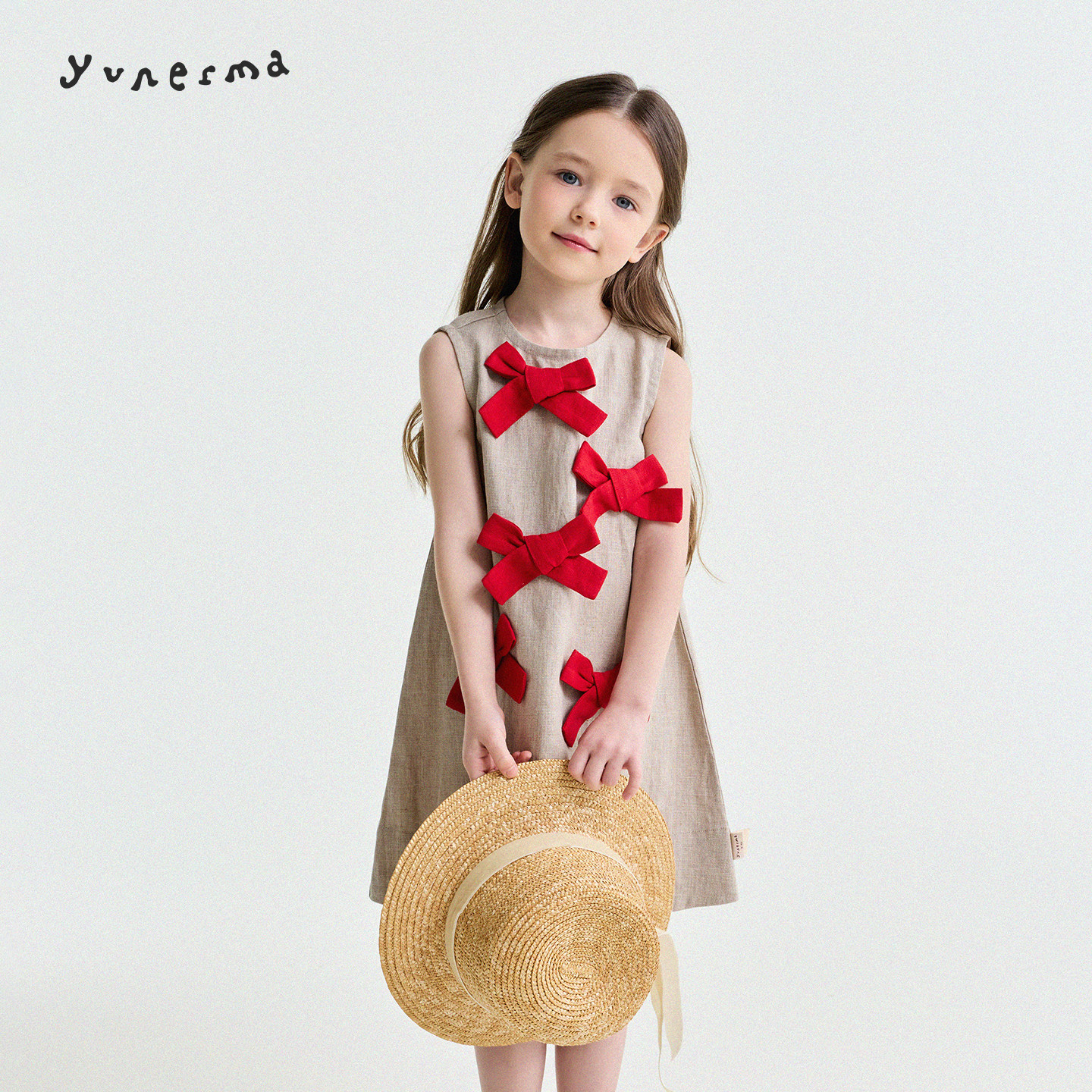 允儿妈女童夏季纯亚麻复古蝴蝶结背心裙儿童小众公主裙新款连衣裙