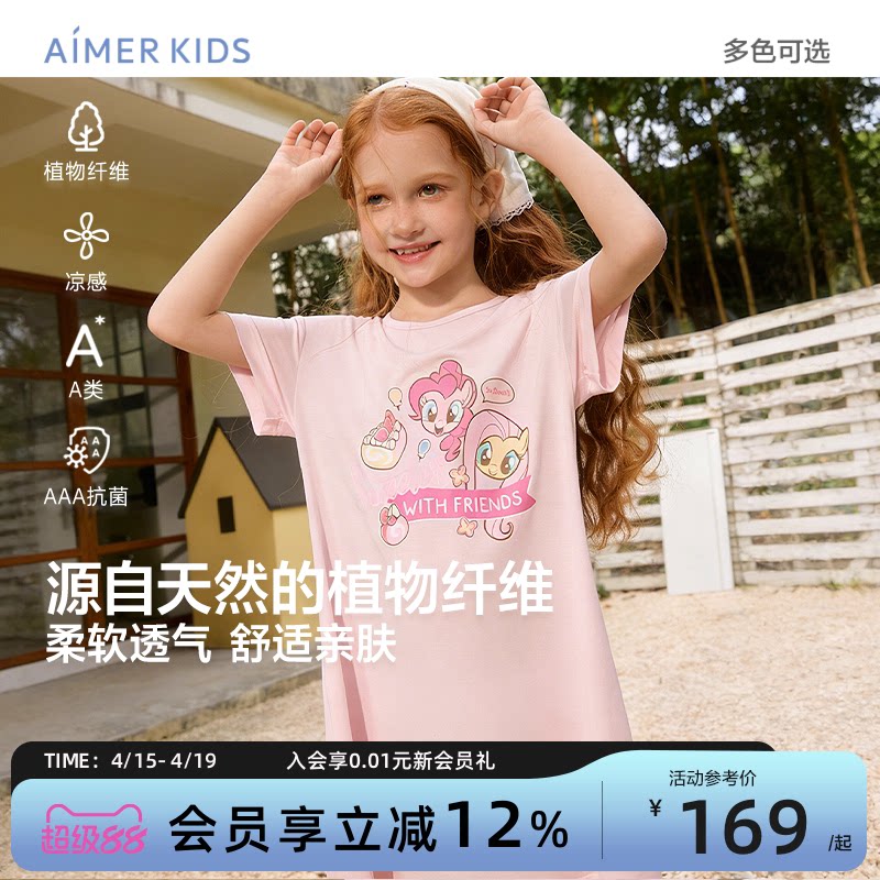 爱慕儿童女孩莫代尔短袖睡裙3A抗菌卡通A类26新品小马宝莉IP联名