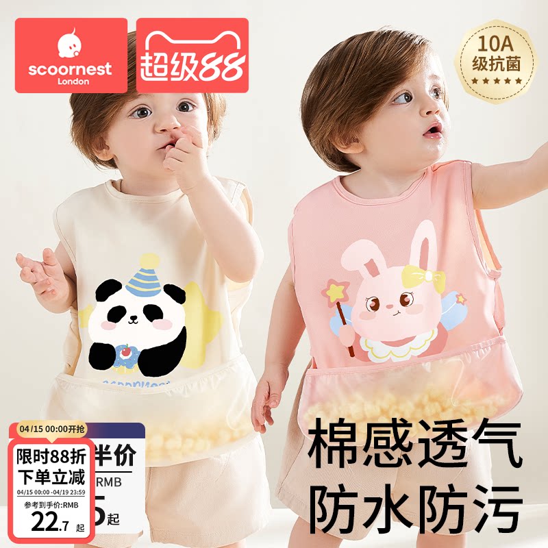 儿童罩衣男女宝宝吃饭围兜2026新款婴幼儿园辅食无袖围裙防脏3岁