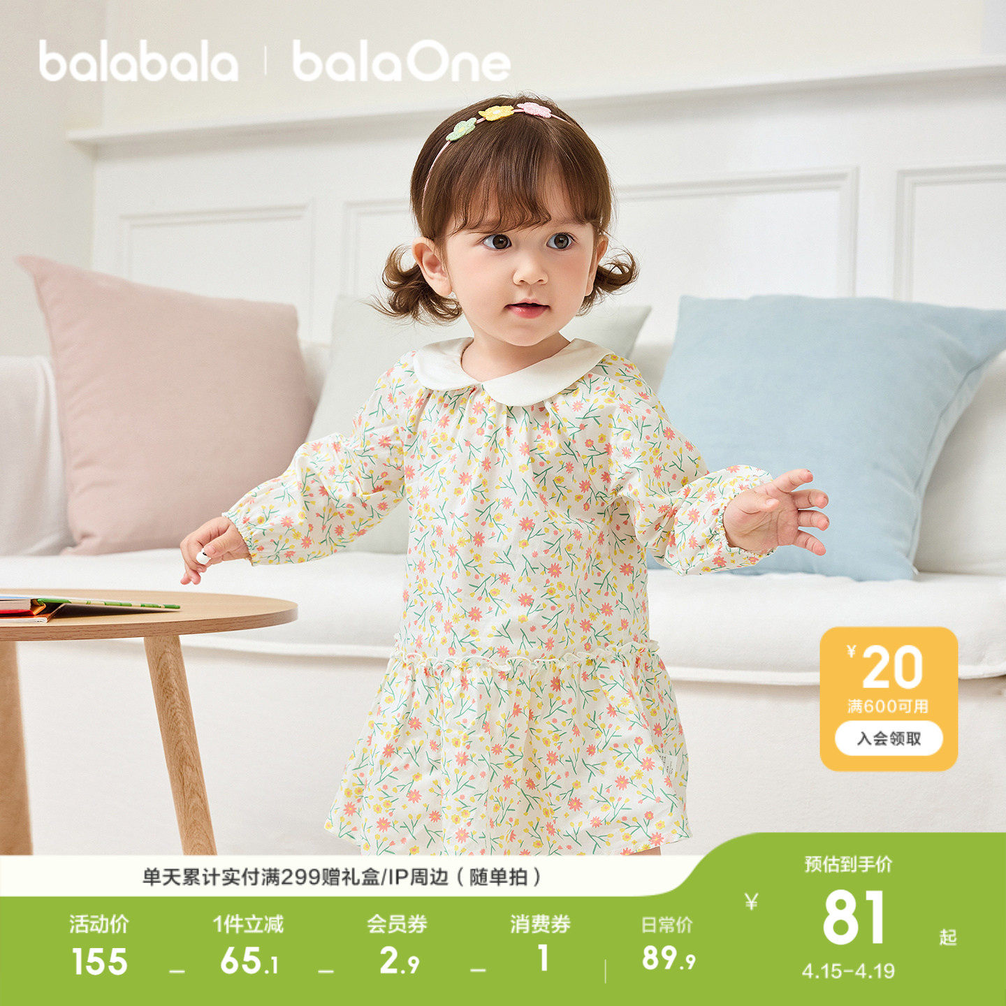 【balaOne】巴拉巴拉童装儿童连衣裙女童2026新款春装满印短裙子