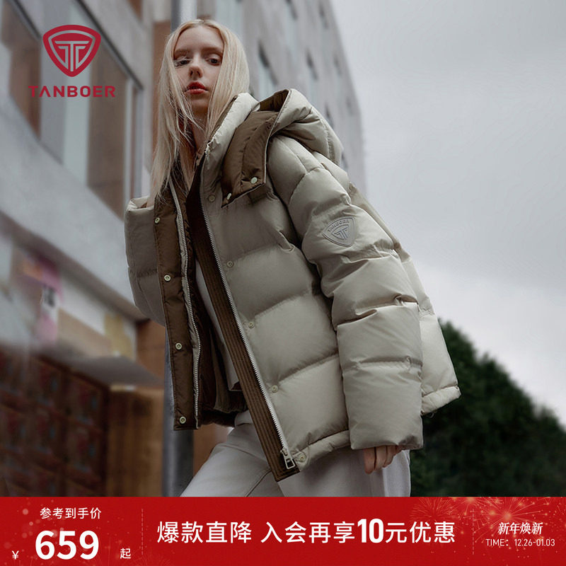 坦博尔羽绒服女短款加厚保暖便携可脱卸帽百搭撞色设计感秋冬外套