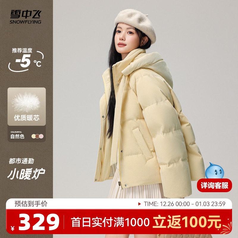 雪中飞2025冬新款小个子女士短款复古连帽羽绒服可露丽设计感保暖