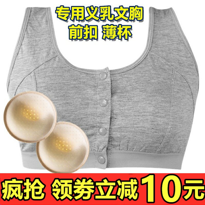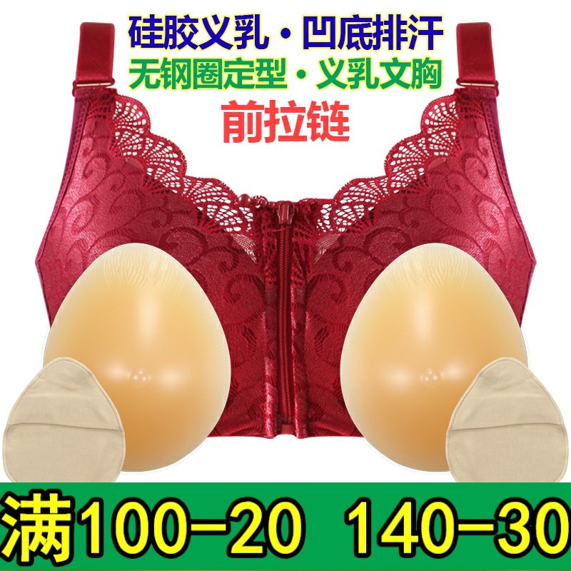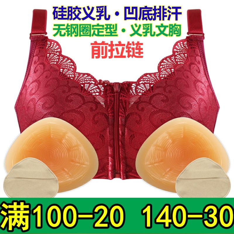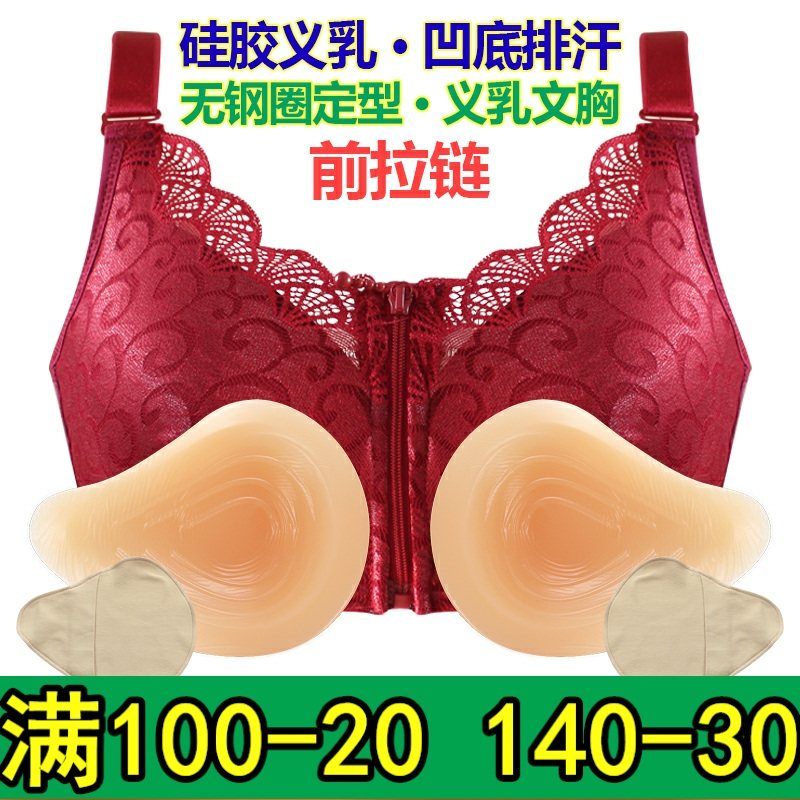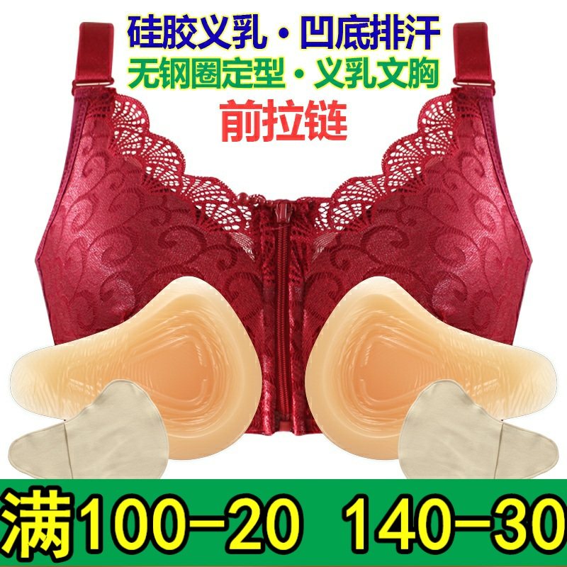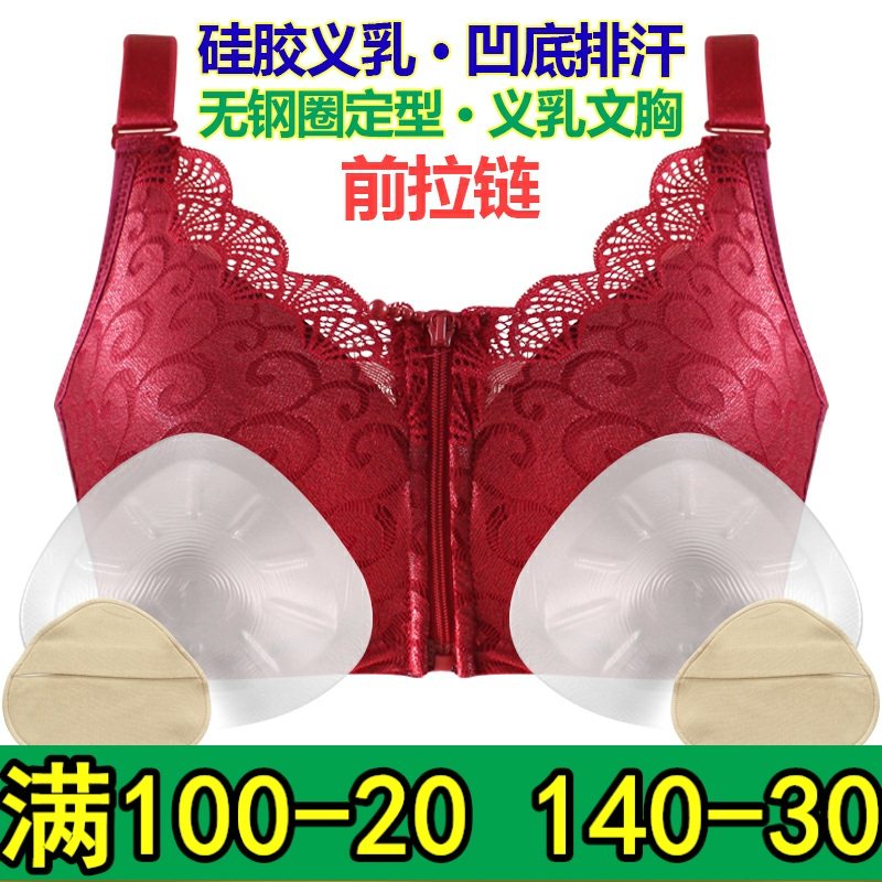 轻质硅胶义乳文胸无钢圈r前扣中老年术后乳罩内衣女薄棉质胸垫加