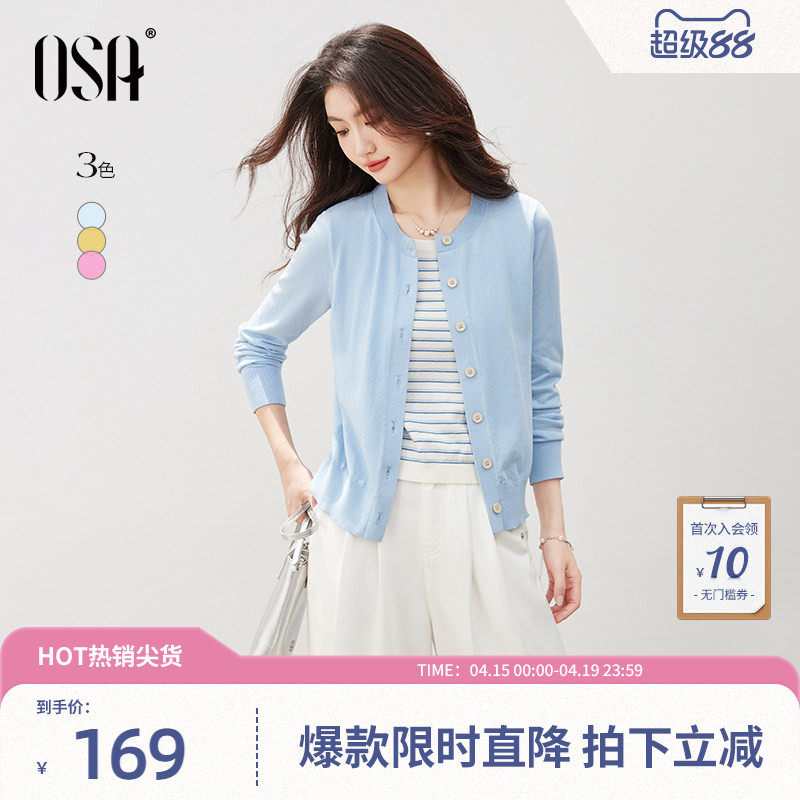 OSA欧莎盐系假两件条纹针织衫女2026年春季新款简约通勤圆领上衣
