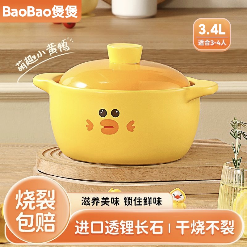 煲煲小黄鸭砂锅家用煲汤炖锅通用大容量干烧不裂食品级防爆陶瓷煲