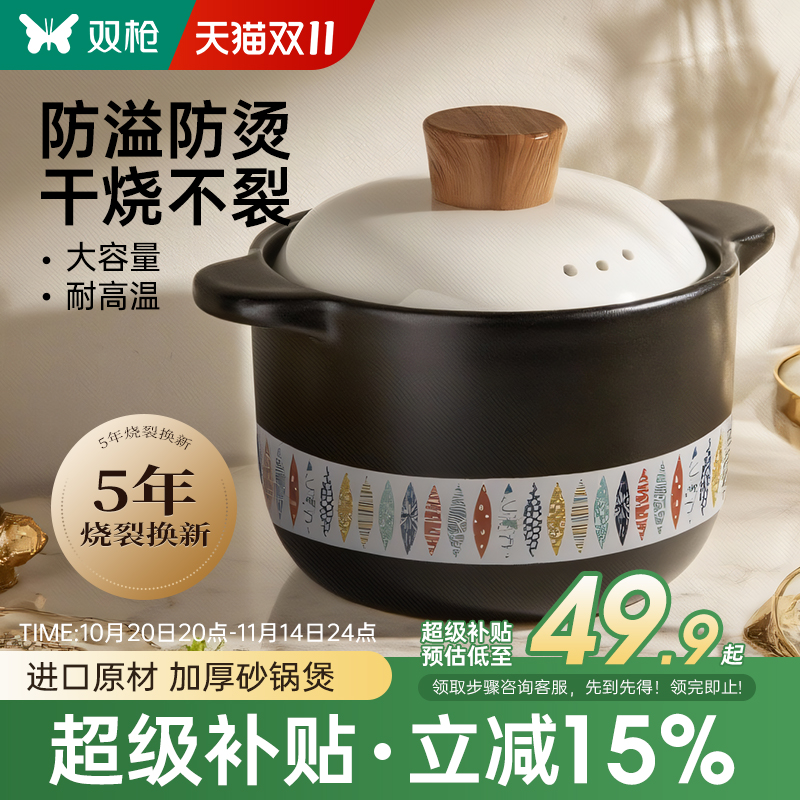 【国补】双枪砂锅干烧不裂家用炖锅陶瓷煲仔饭汤煲炖汤锅煲汤锅大