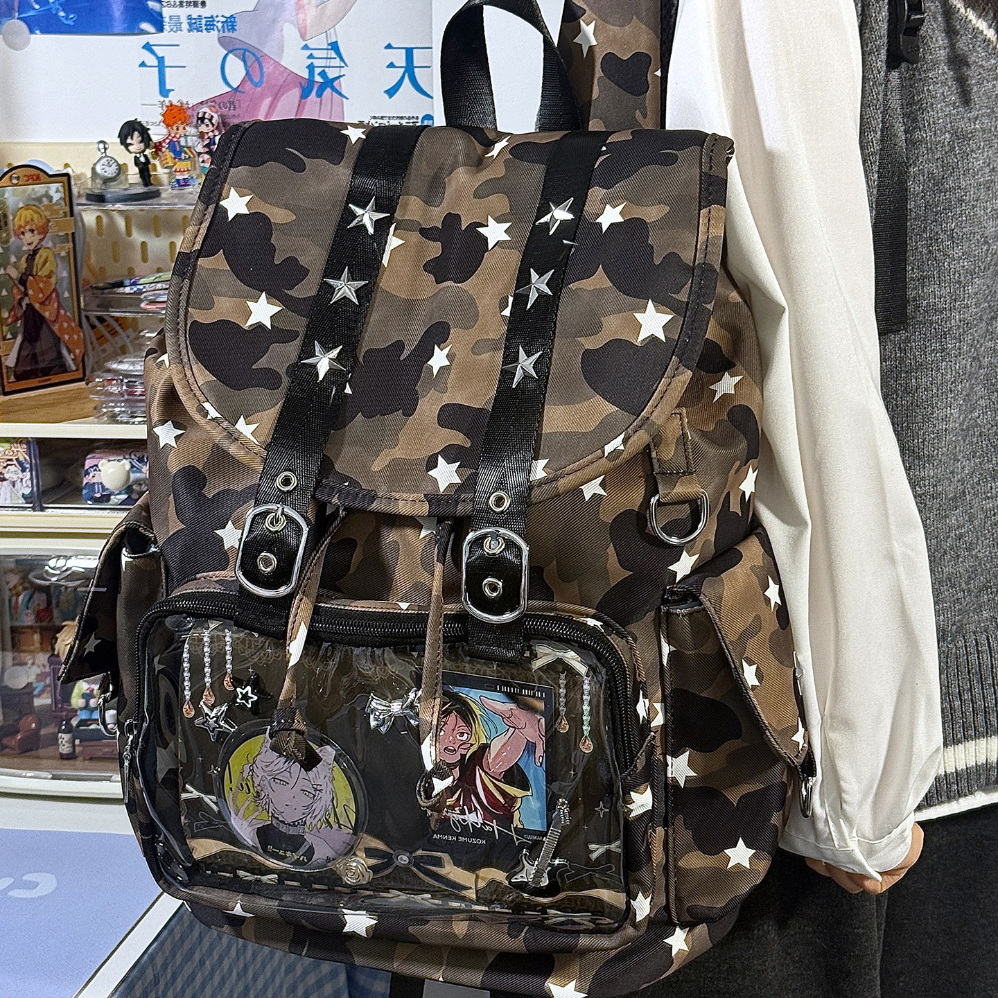 复古迷彩星星双肩痛包男女大容量小众学生书包背包10cm15cm娃包