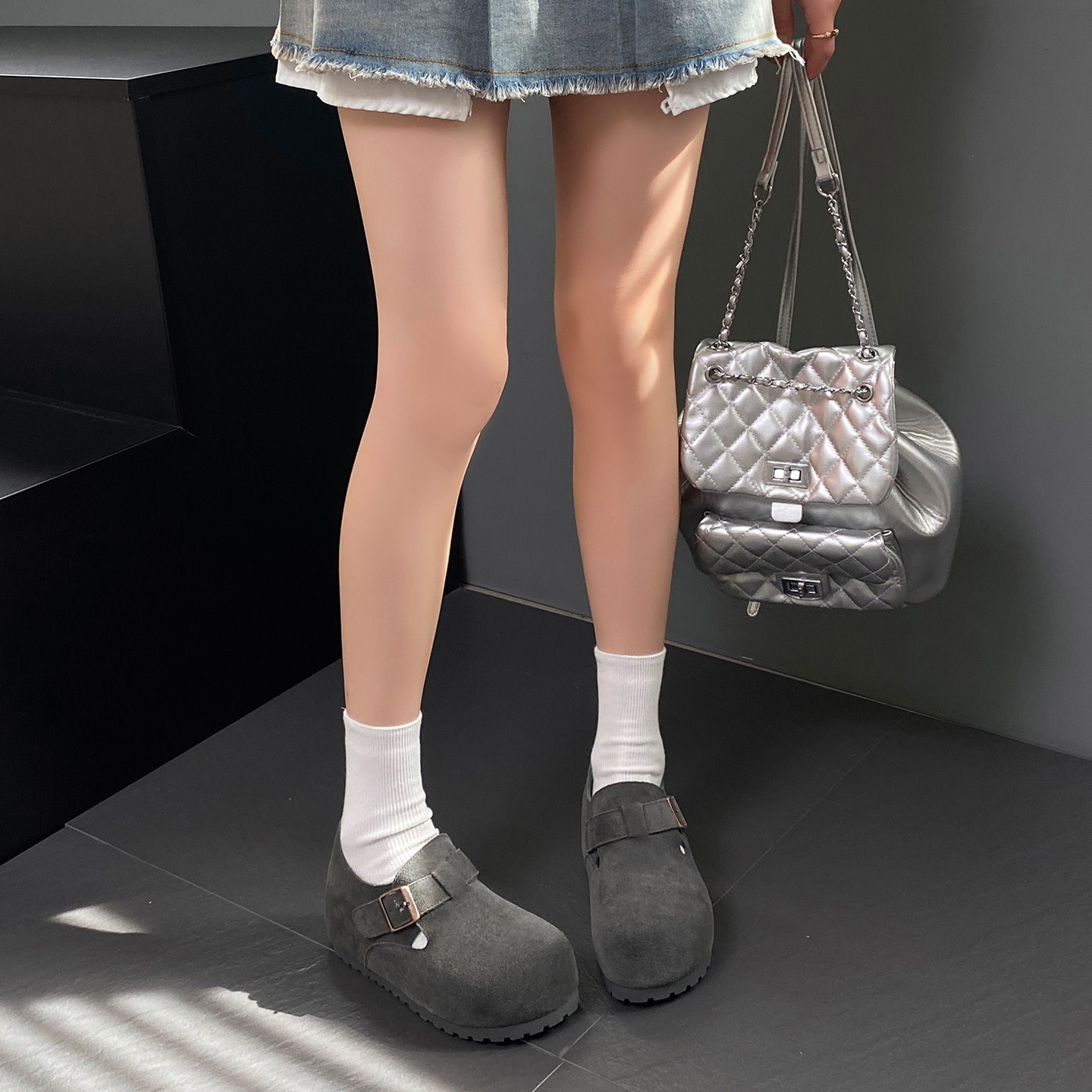 森达内增高厚底灰色勃肯鞋女鞋26春新款一脚蹬休闲鞋超火博肯鞋