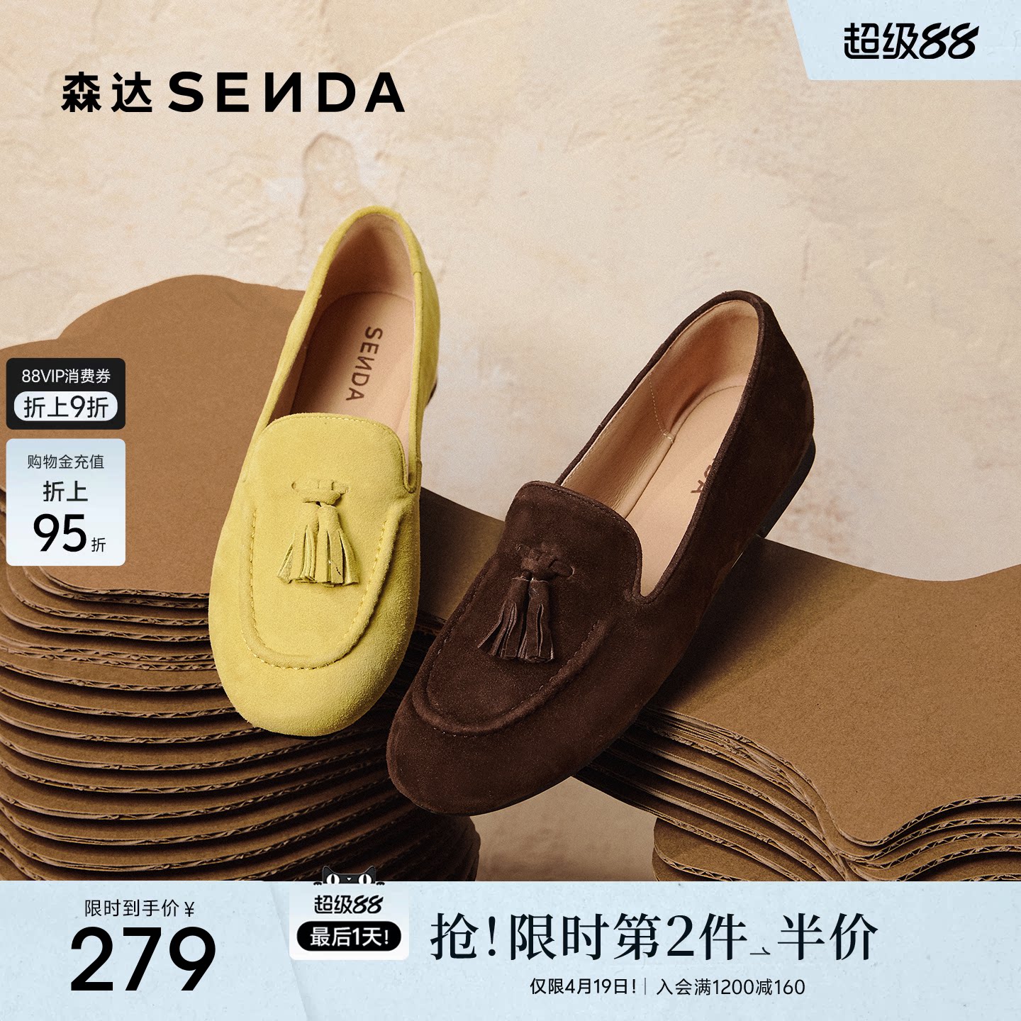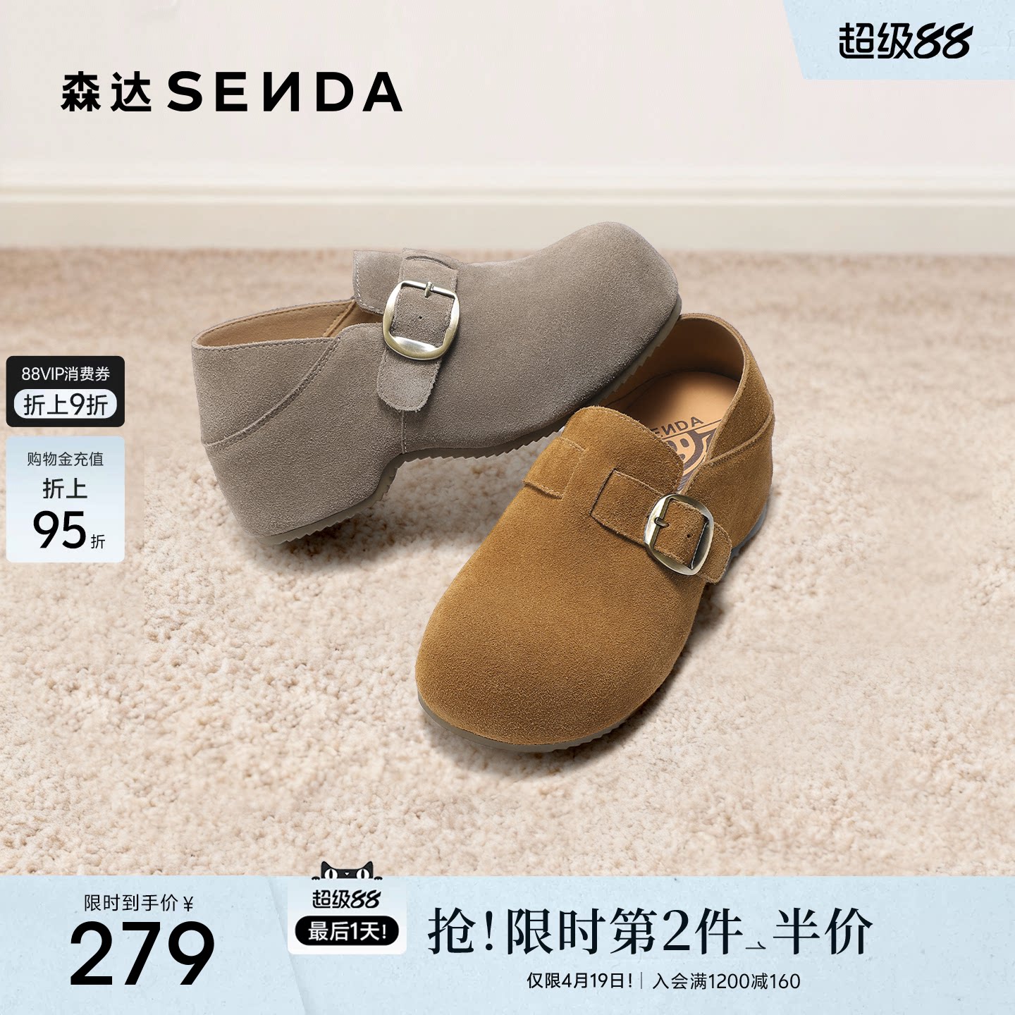 森达超软羊皮乐福鞋女鞋26春新绒面皮鞋一脚蹬厚底内增高休闲单鞋