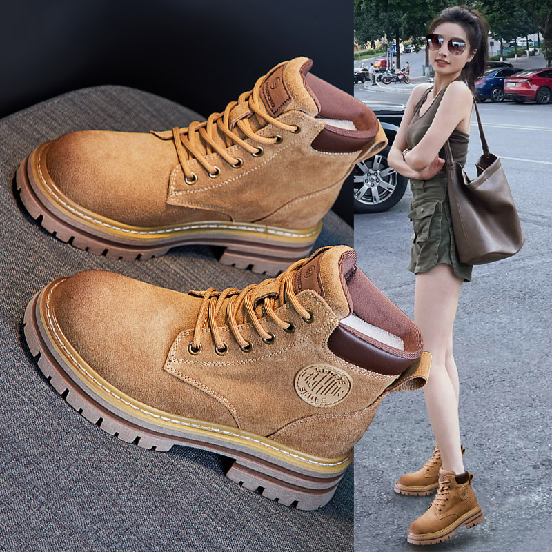 内增高女靴马丁靴女2025春秋季新款户外登山大黄靴工装靴子女短靴