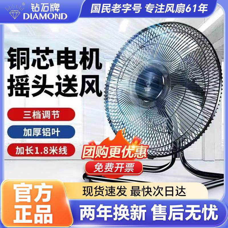 钻石牌趴地扇工业大风力八档调速工地摇头强劲爬地电扇装修去甲醛